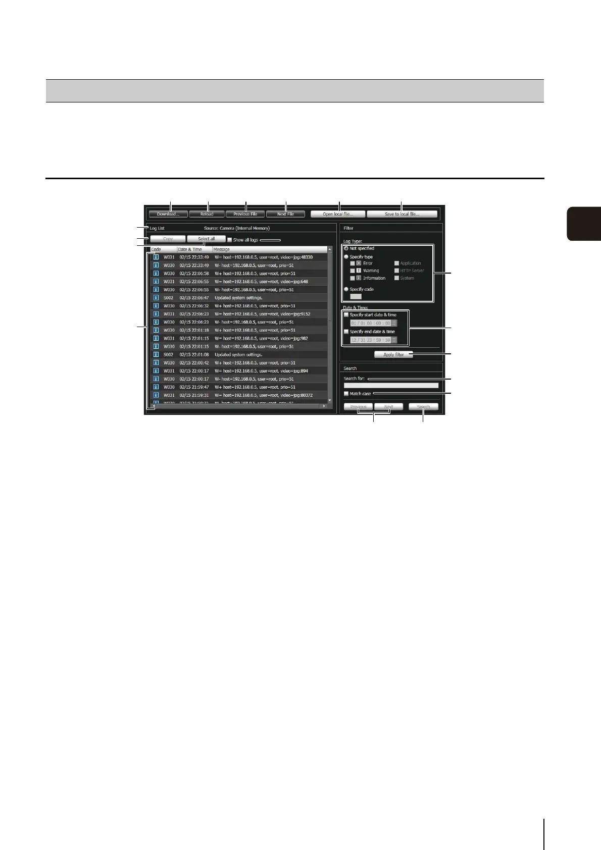 Display Screens of Log Viewer