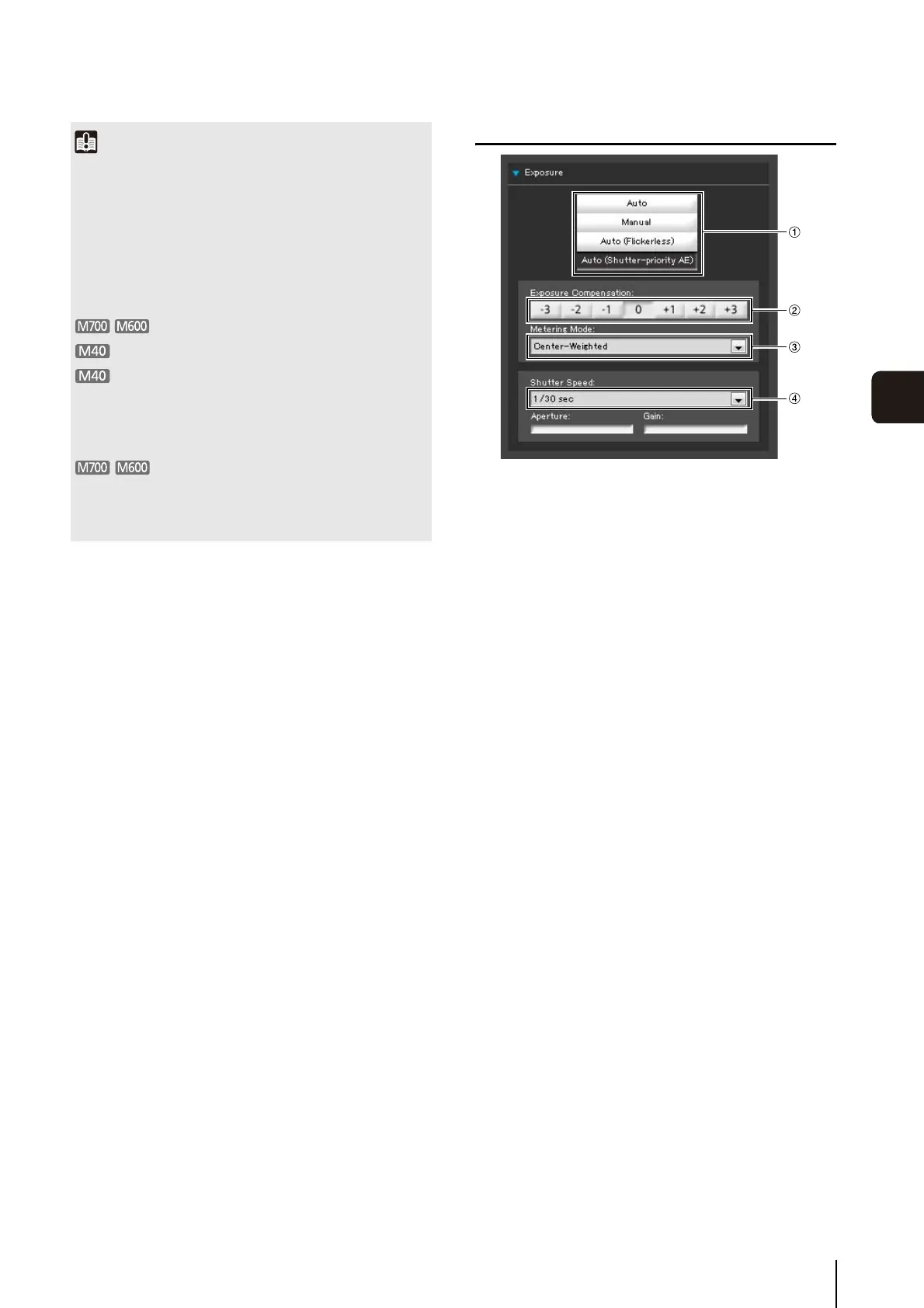 Select from [Auto], [Manual], [Auto (Flickerless)] or