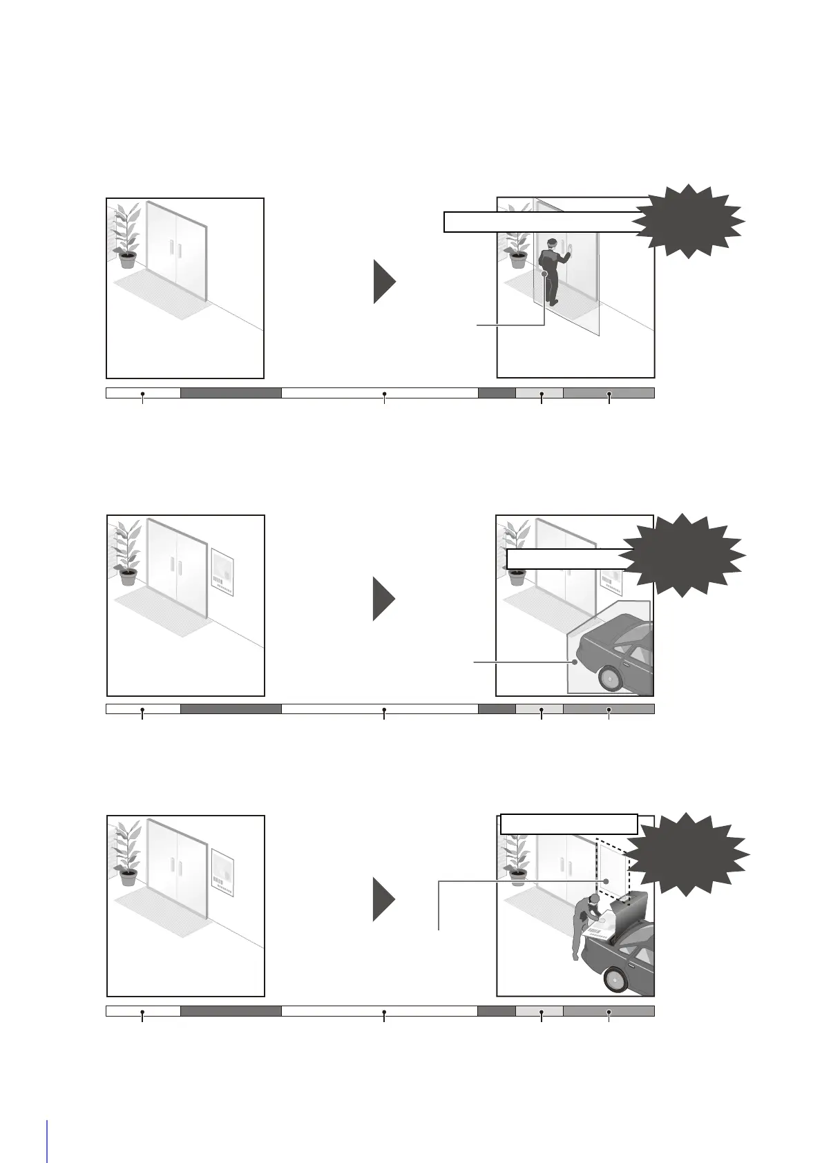 Moving object detection is triggered while moving objects are inside the detection area.