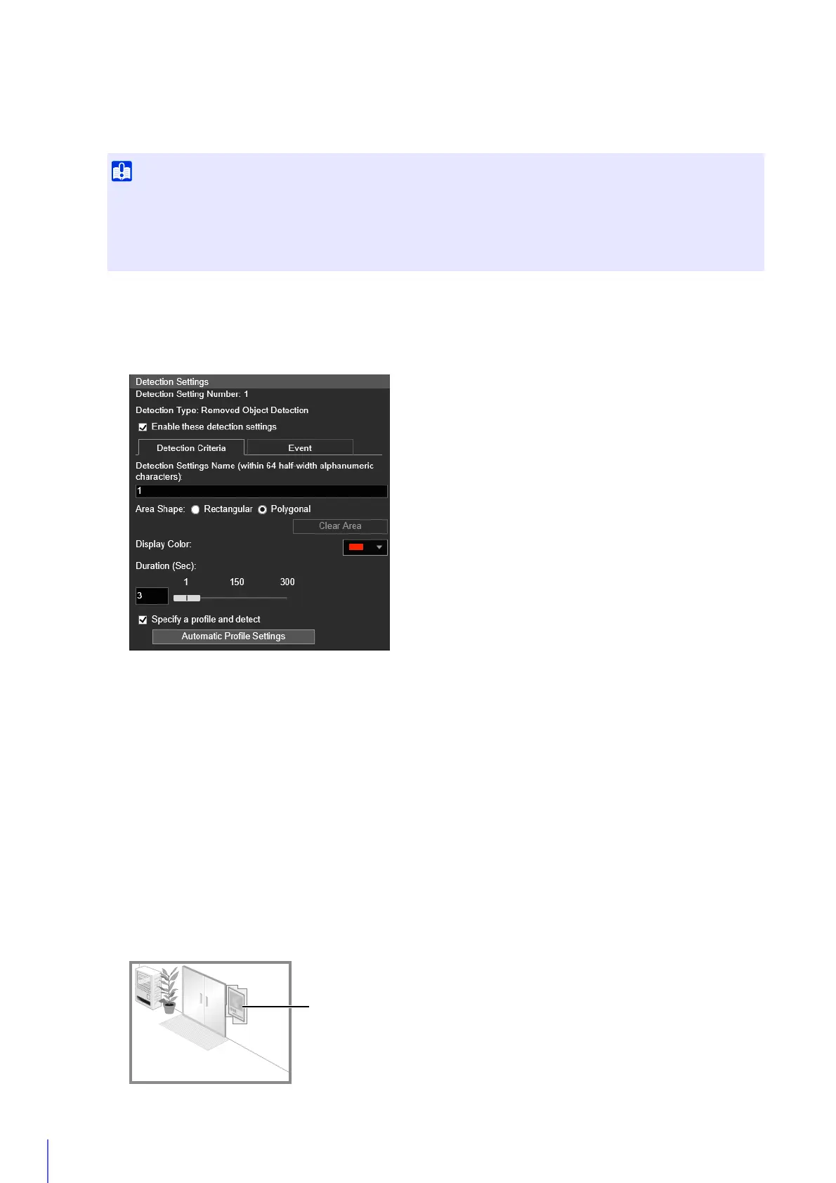 • If the video inside the detection area changes without an object being removed, it may be misdetected as a removed object.