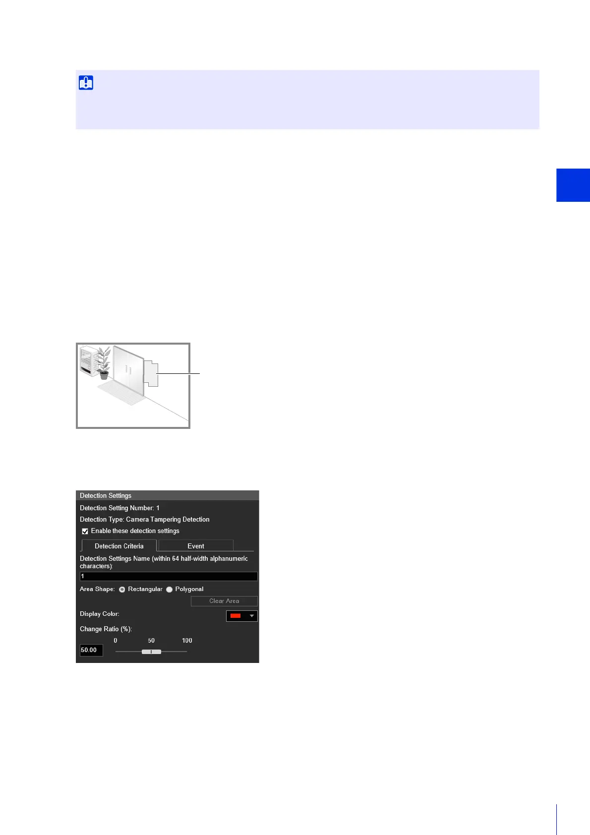 For [Camera Tampering Detection], the entire video display area is the detection area. The area cannot be changed.
