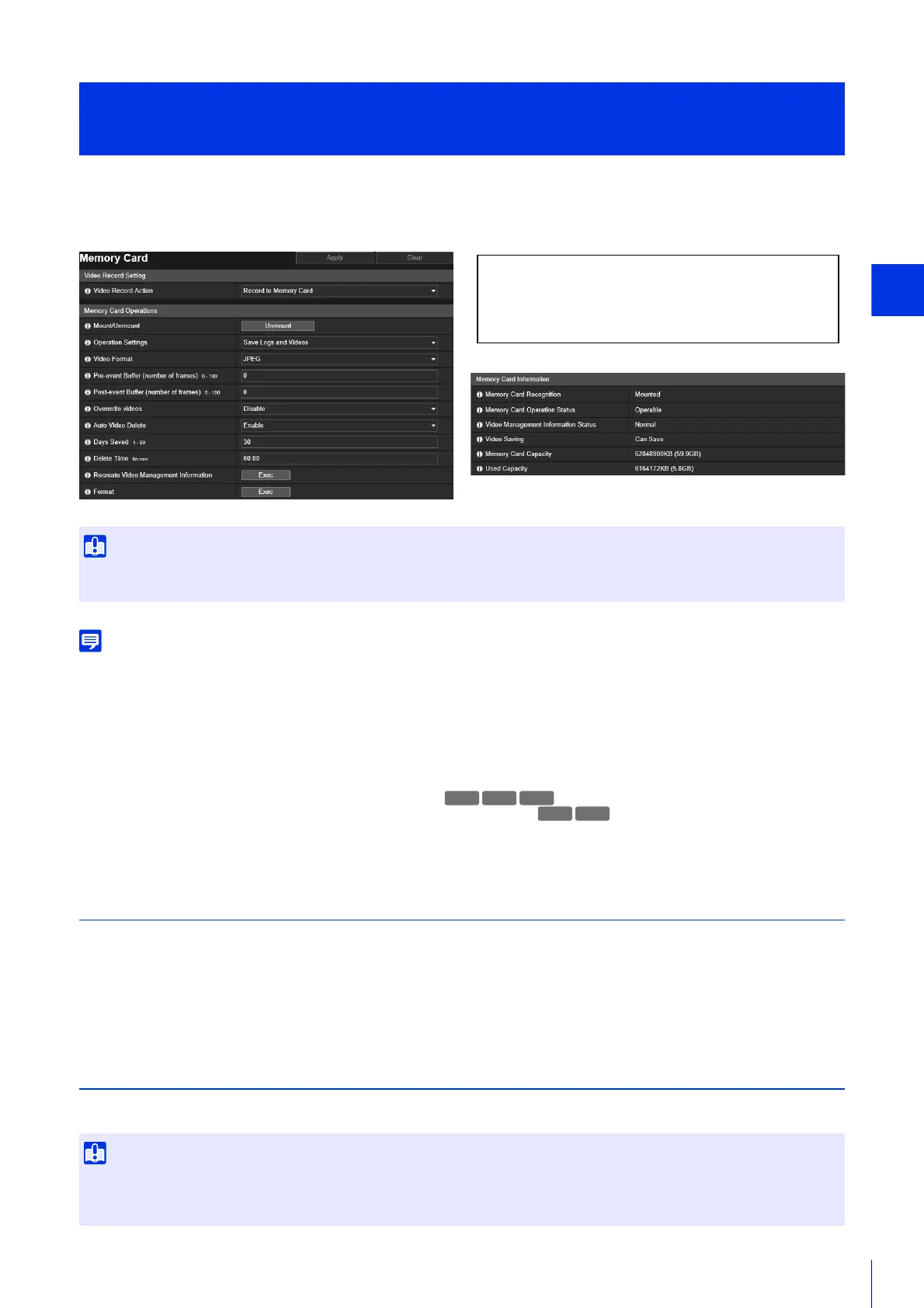 [Memory Card] is the same as [Video Record] > [Memory Card]. Settings configured on one [Memory Card] page are also