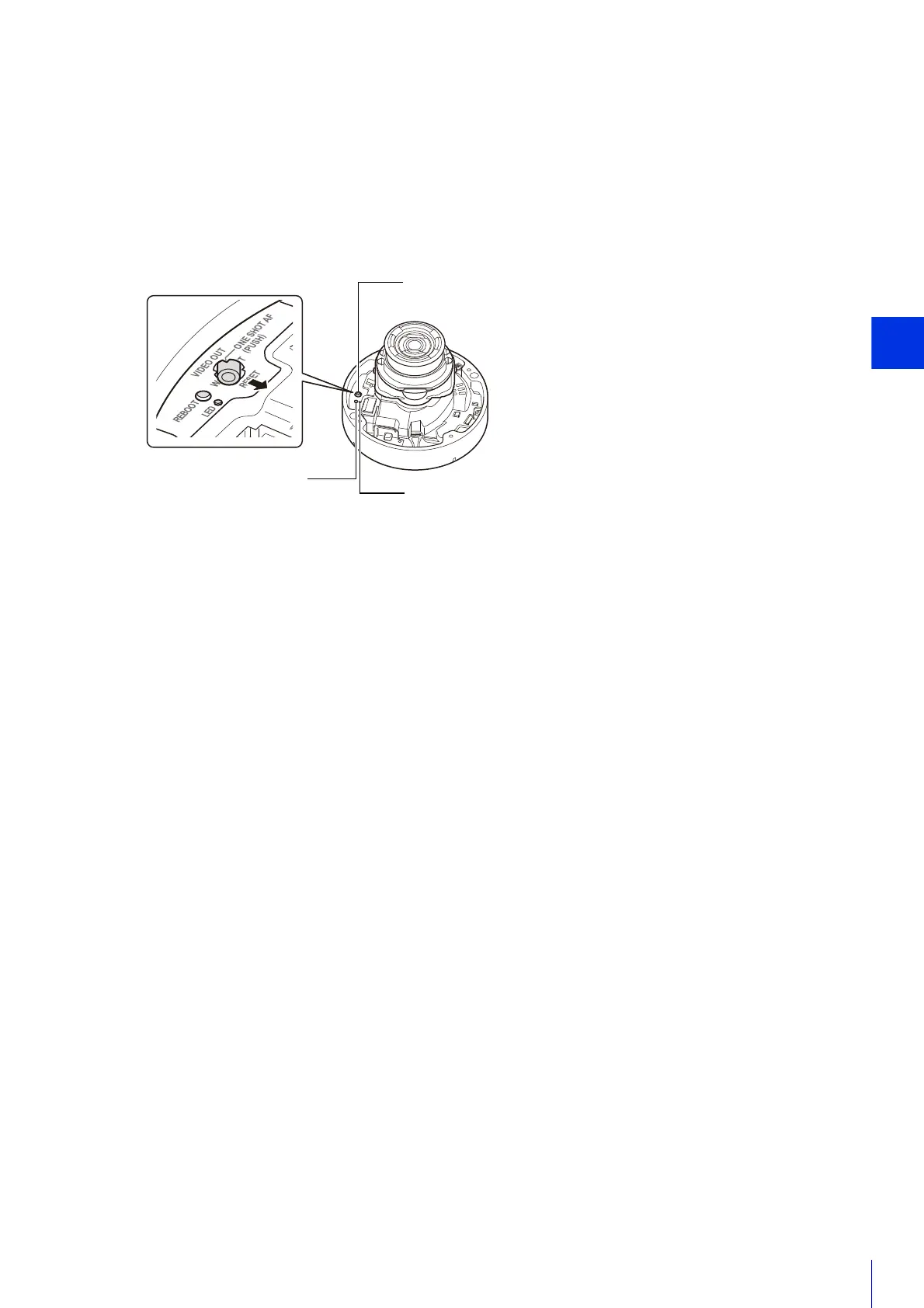 Incline the installation adjustment switch to the RESET position while pressing the reboot switch with a pointed