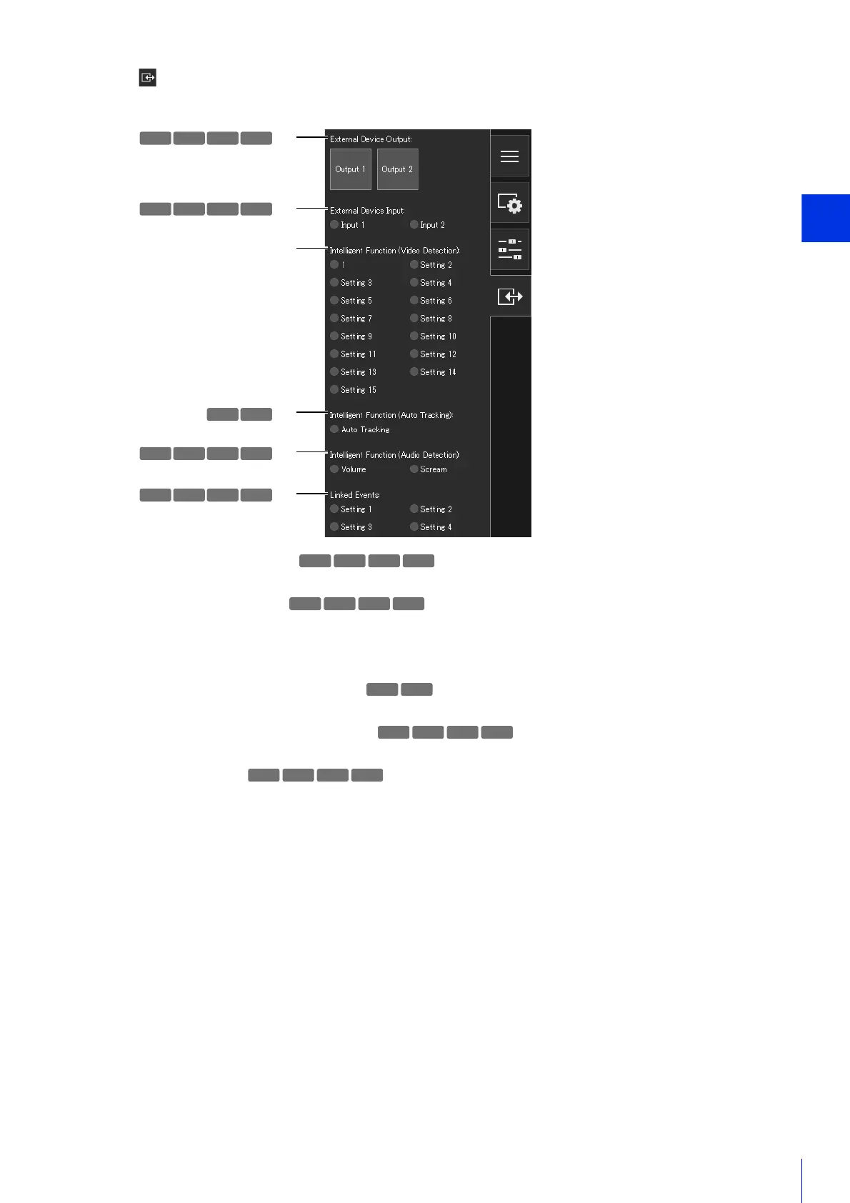 Displays the status of video detection by the intelligent function for each detection setting number (P. 84).