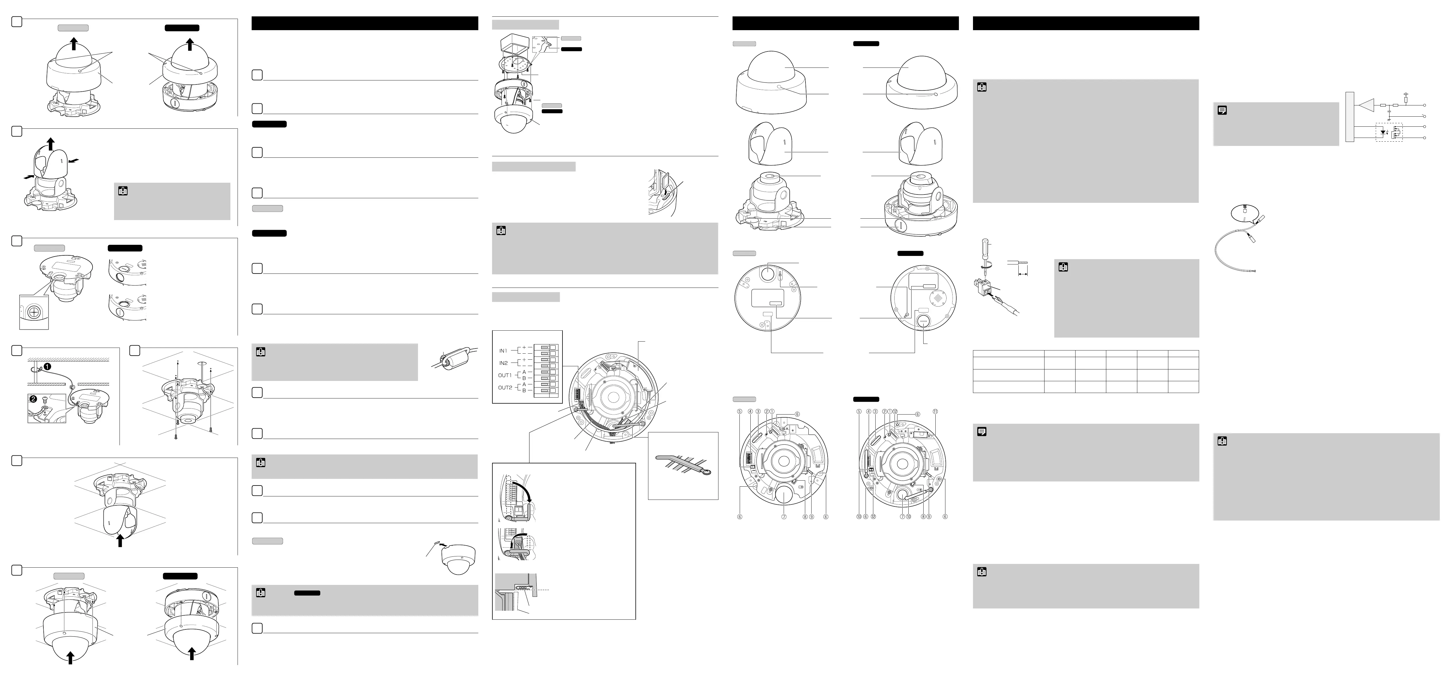 When attaching the dome case, be sure not to pinch cables between the camera and dome case. Pinched