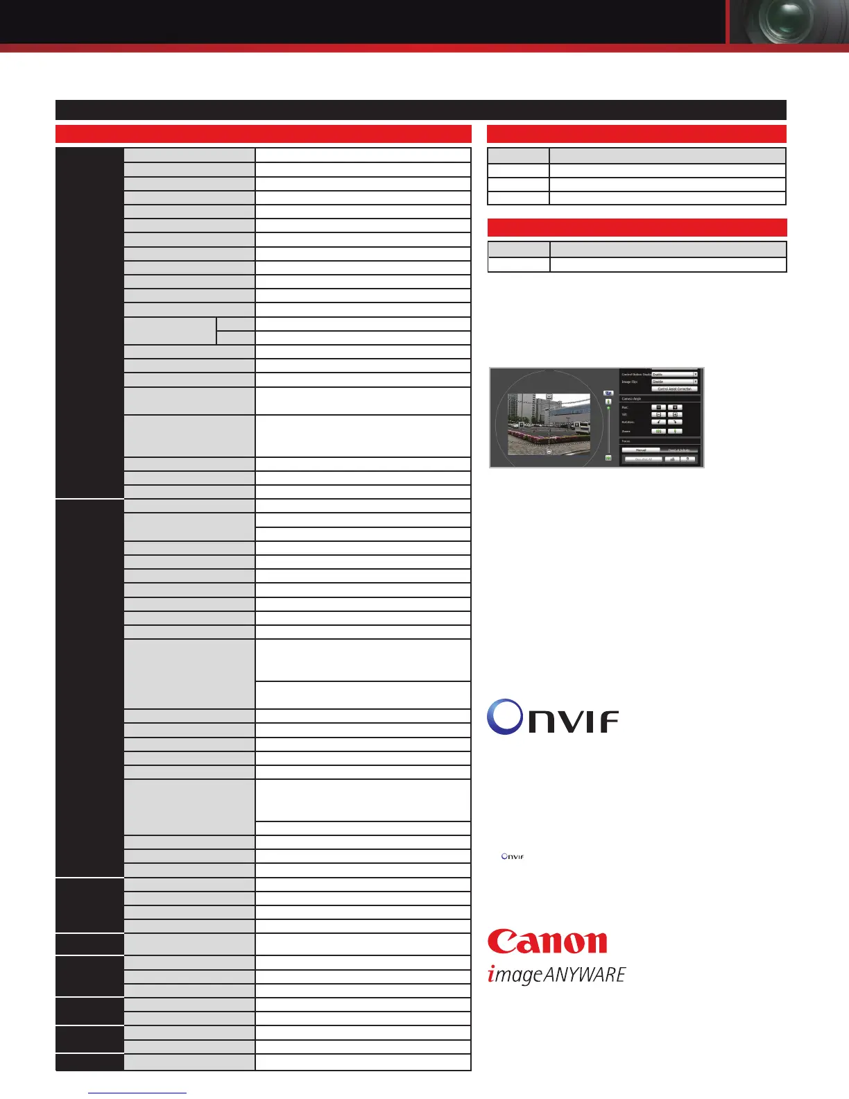 NTP, SMTP authentication, WV-HTTP (Canon protocol), ONVIF