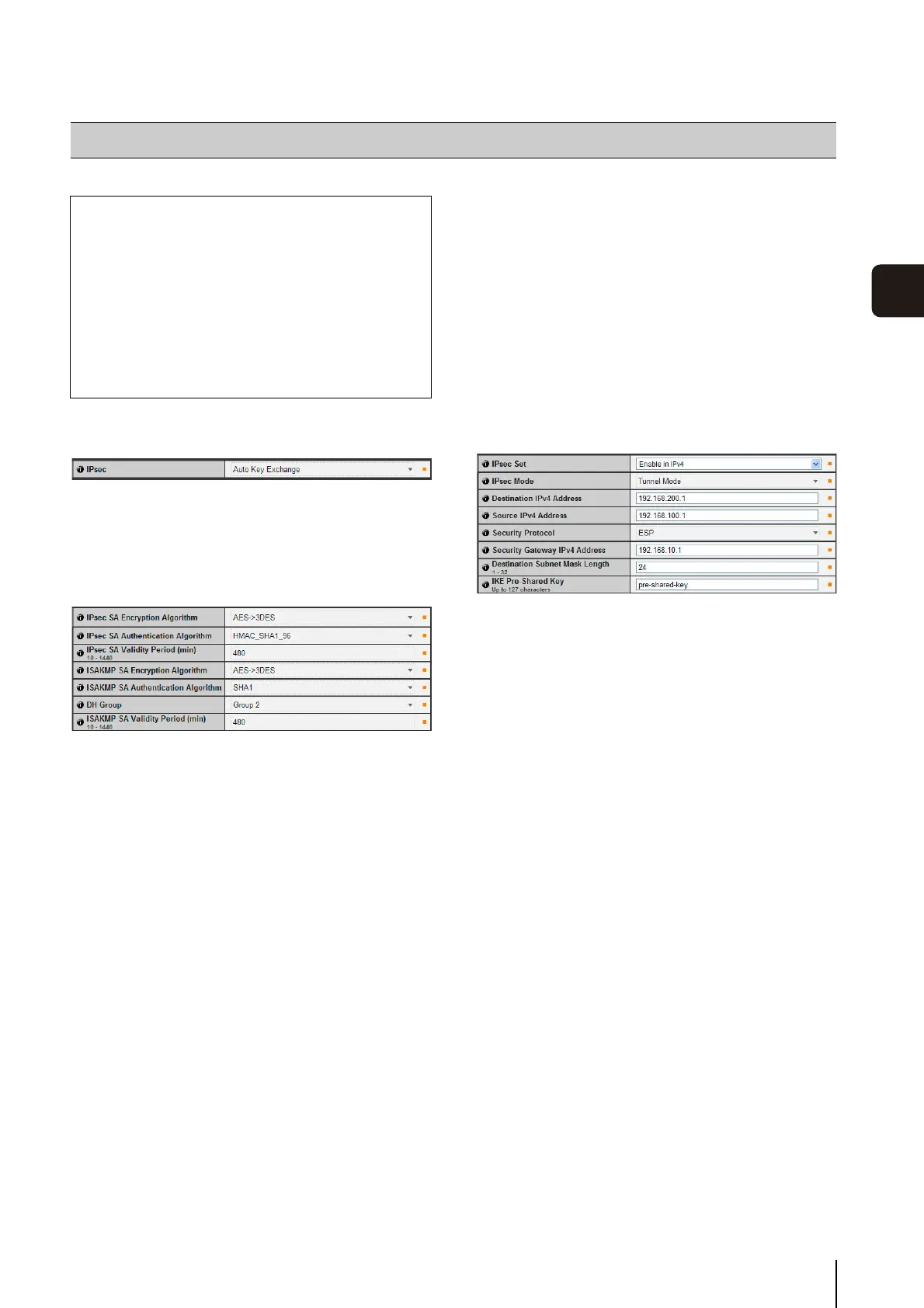 IPsec Sets 1 to 5 are available, and you can specify IPsec