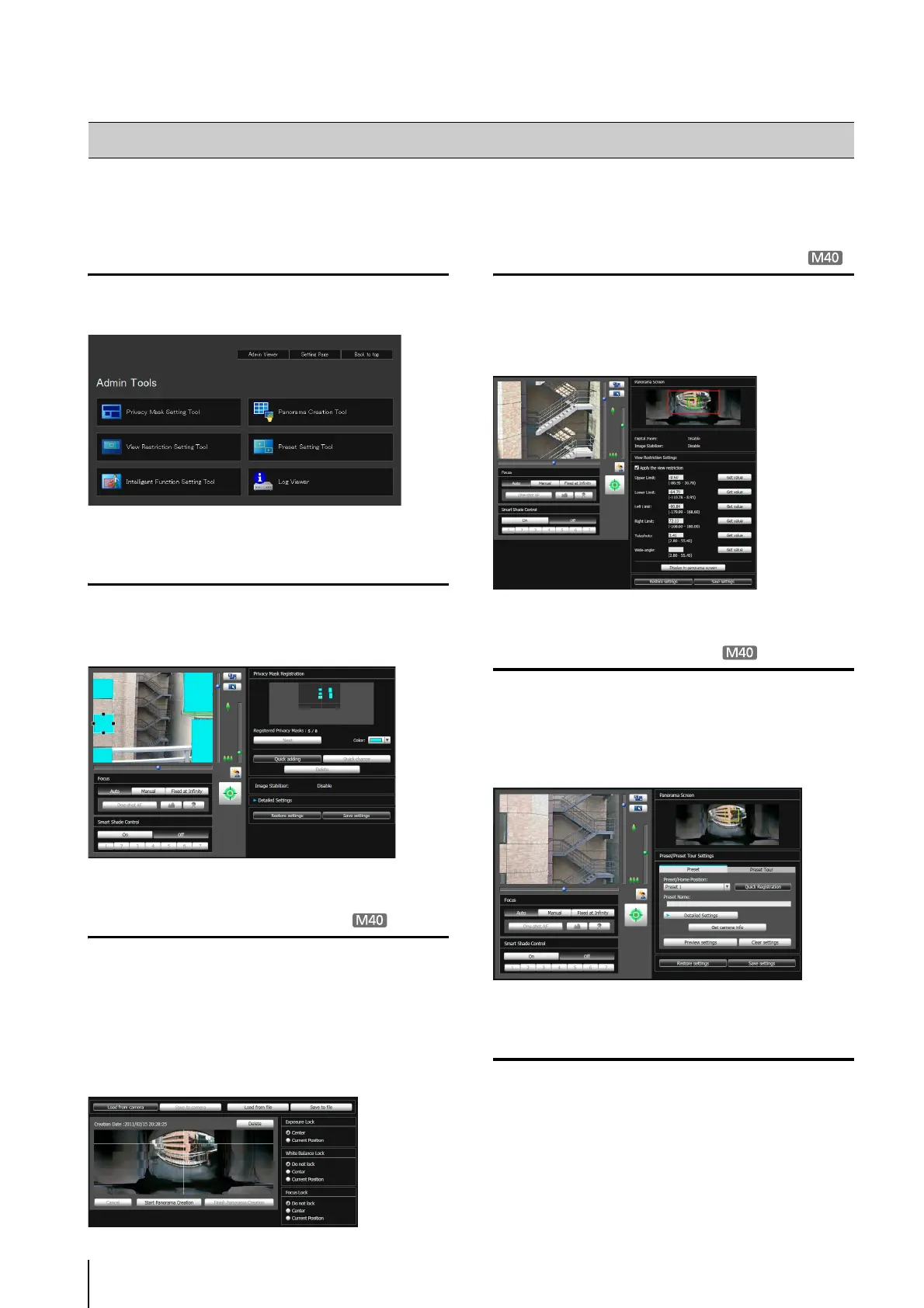 Admin Tools consists of applications for remotely making camera settings, checking operating conditions, and acquiring logs.