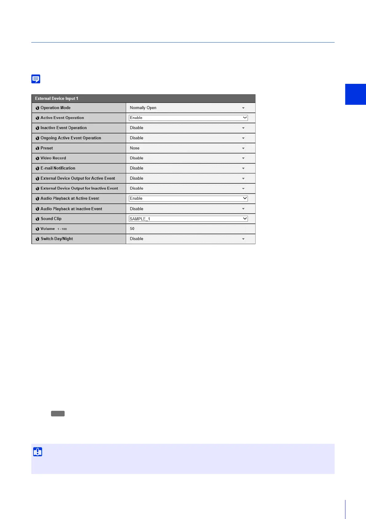 You can set these if you have selected [Enable] in [External Device Input Event].