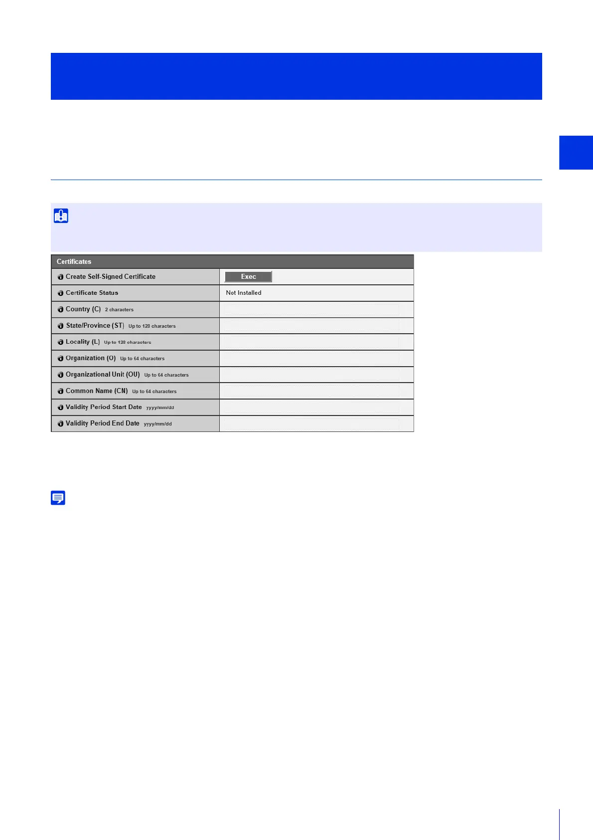 If no certificate is installed, [Not Installed] will appear. If a certificate is installed, the validity period for the certificate will