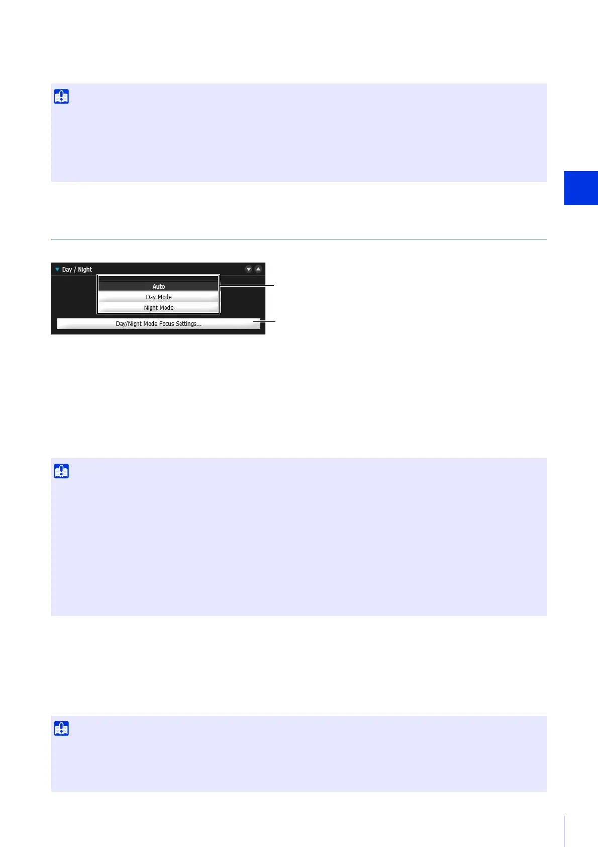 • While making settings with the [Day/Night Mode Focus Settings] panel, it is not possible to make settings using the Admin Tools on