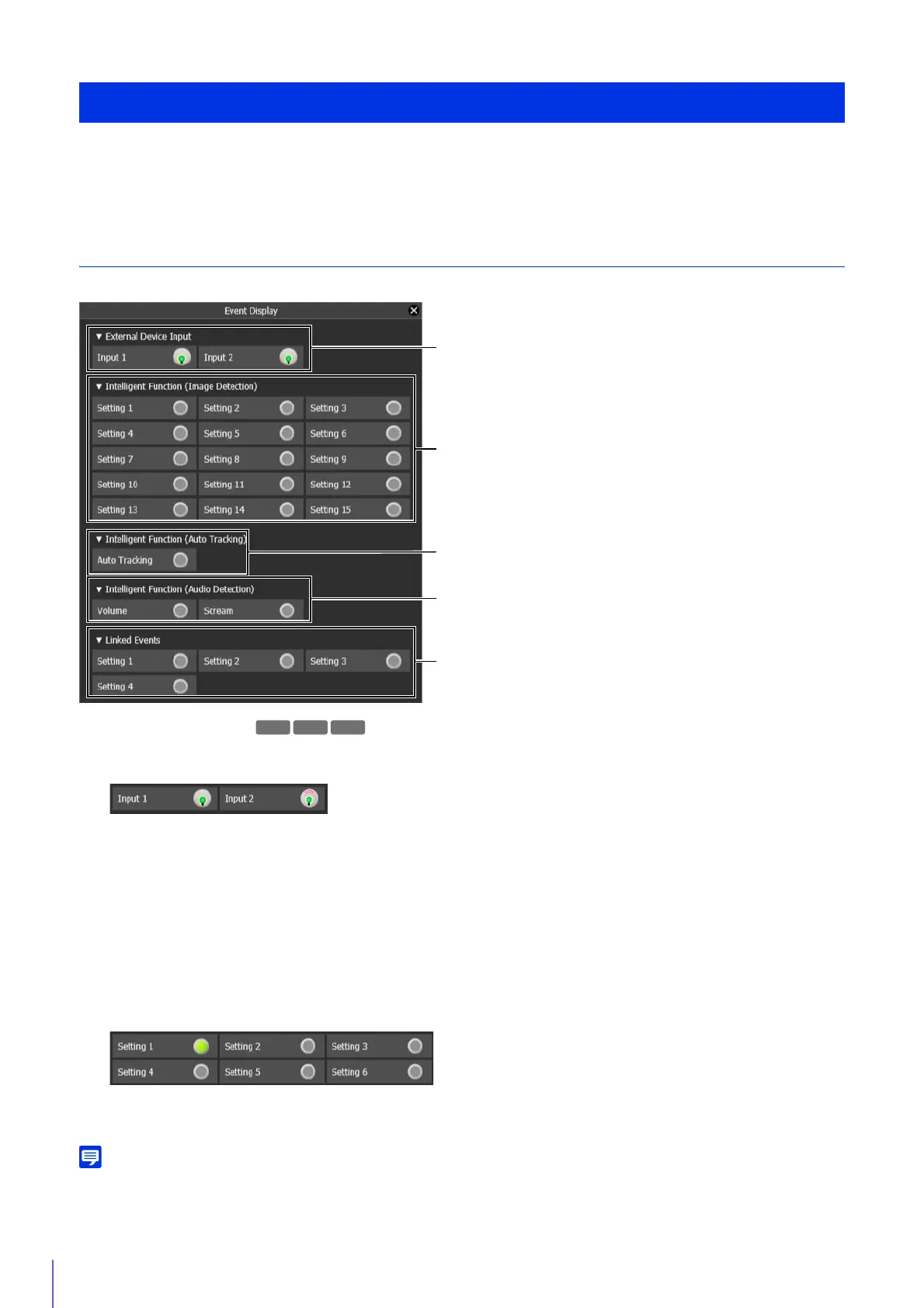 You can use the Event Display panel in the Admin Viewer to check the status for external device inputs, Intelligent Function