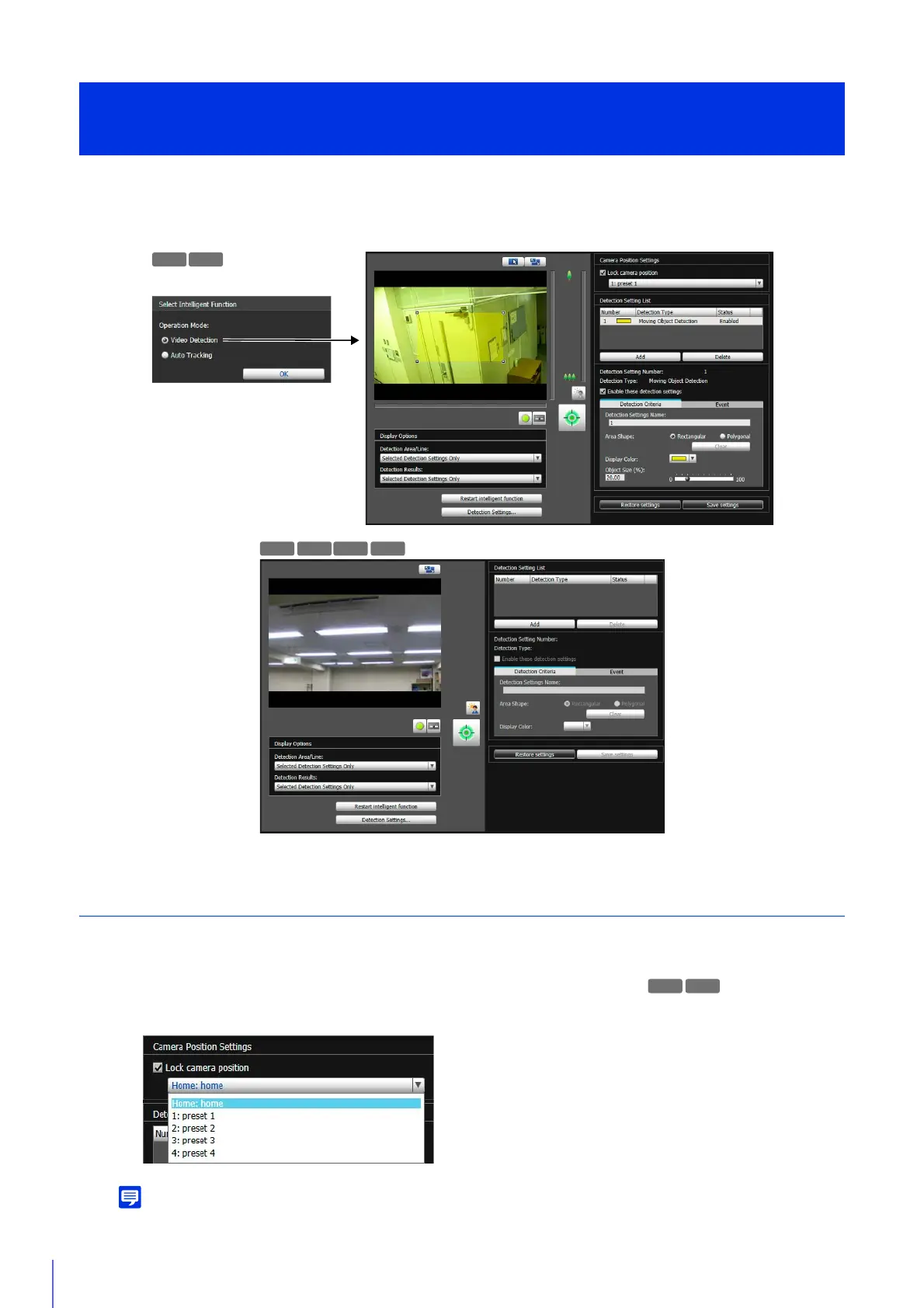 The following are the basic steps for configuring video detection. For details on settings for each type of detection, please