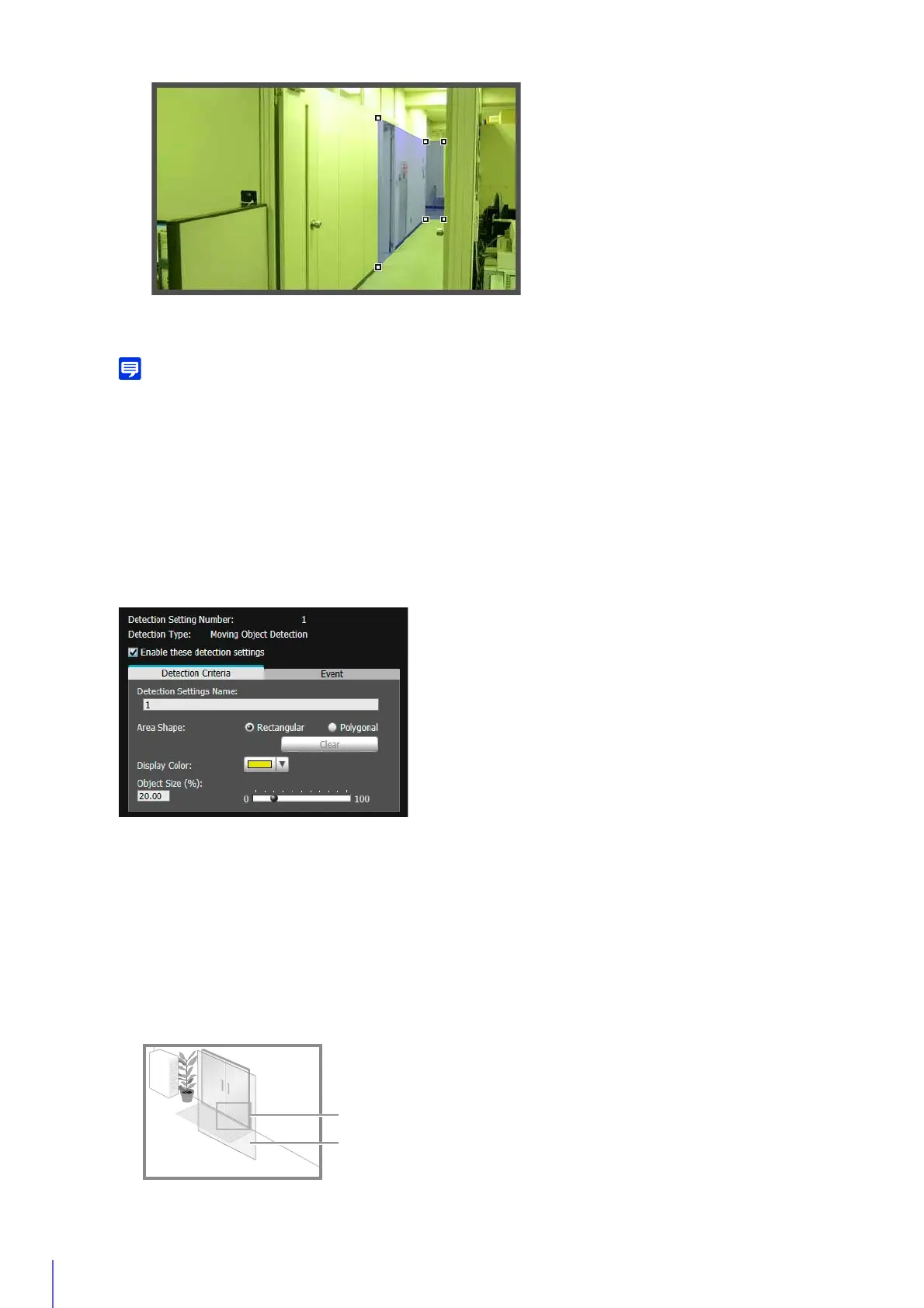 Use the video display area to configure the area where you would like to detect moving objects (P. 219).