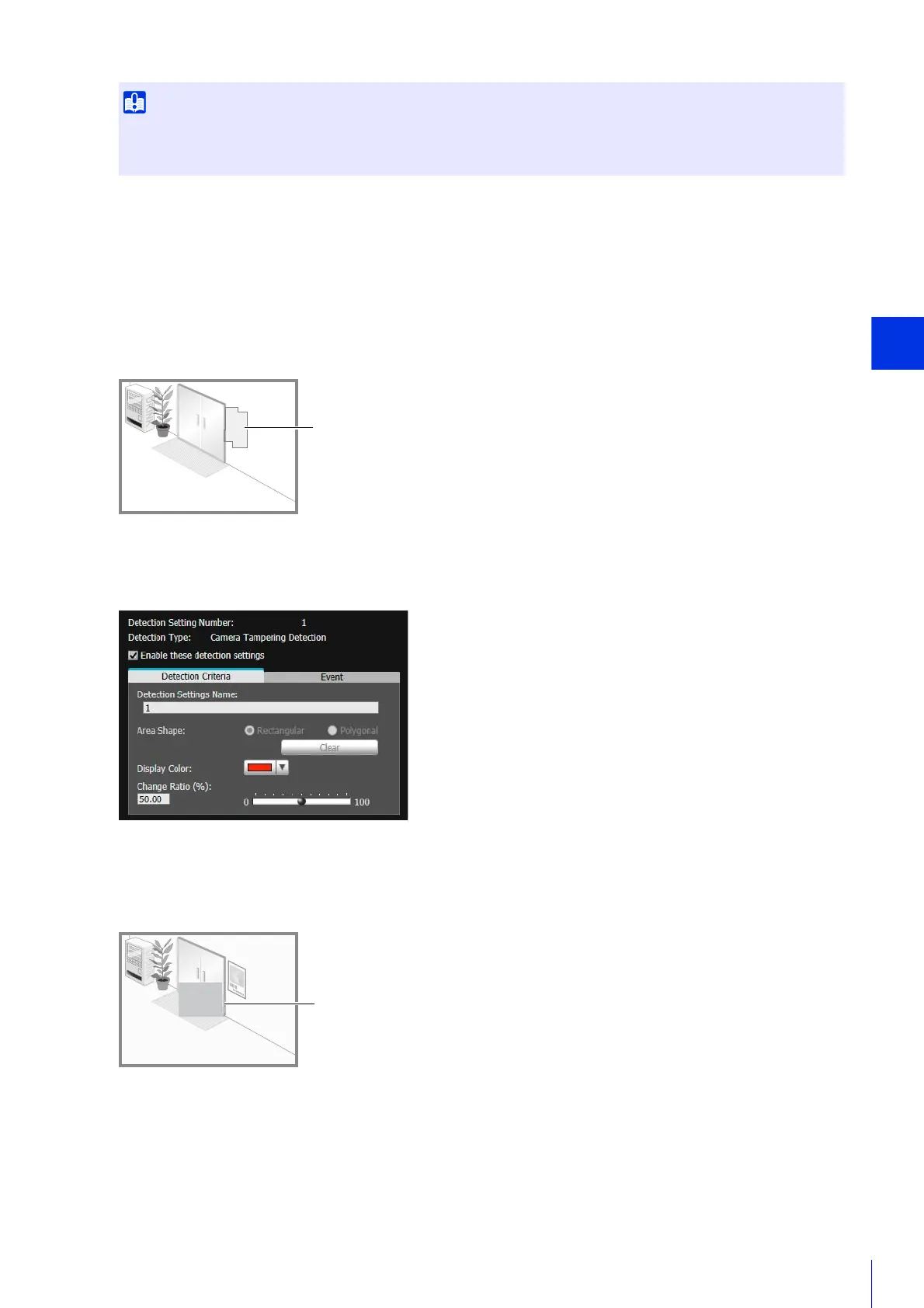 For [Camera Tampering Detection], the entire video display area is the detection area. The area cannot be changed.