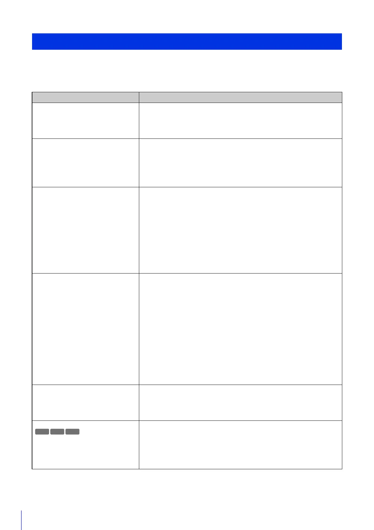 Camera Management Tool does not operate. • Check if the LAN cable is connected correctly.