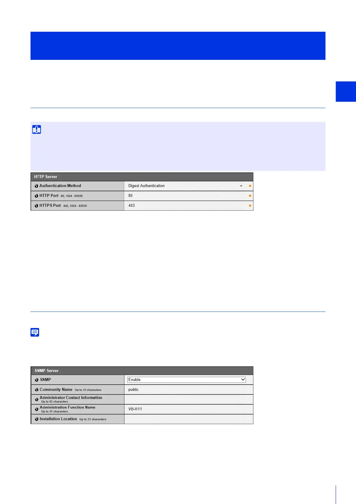 HTTP, SNMP and FTP Server Settings