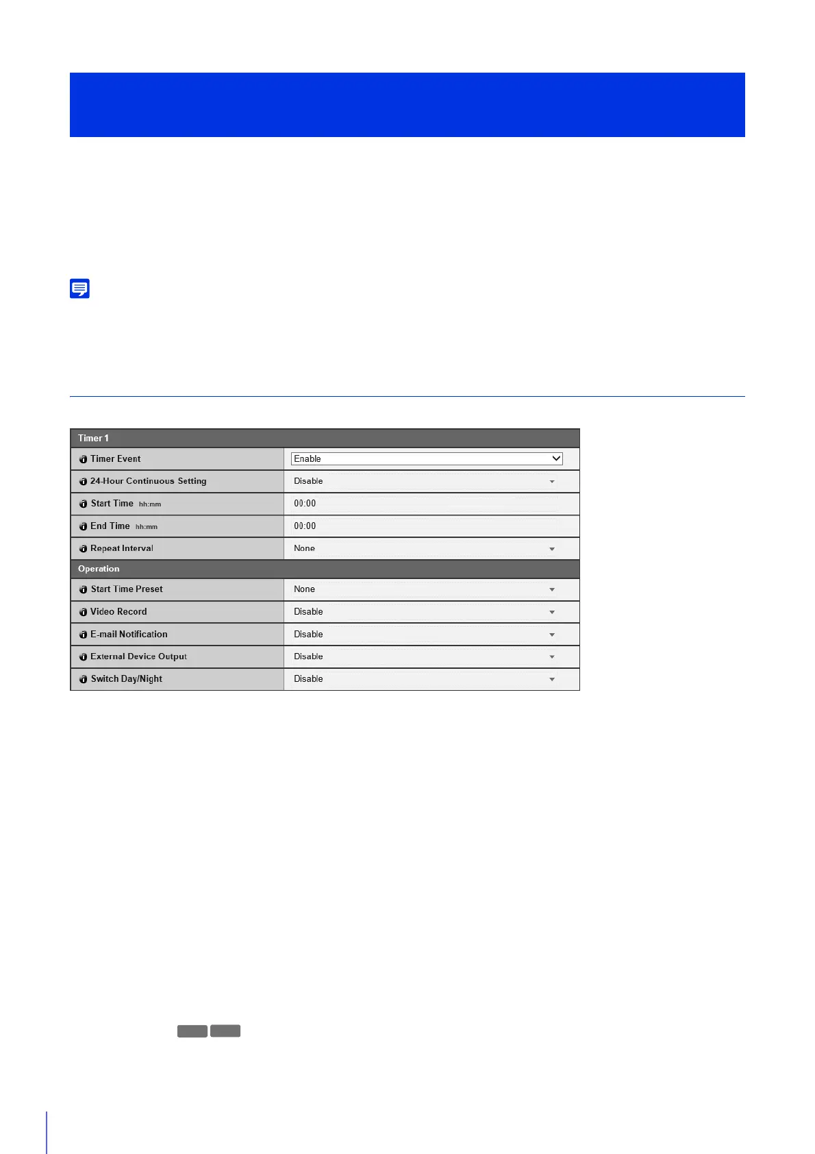 When [24-Hour Continuous Setting] is set to [Disable], enter the end time in 24-hour format for repeating the timer event.