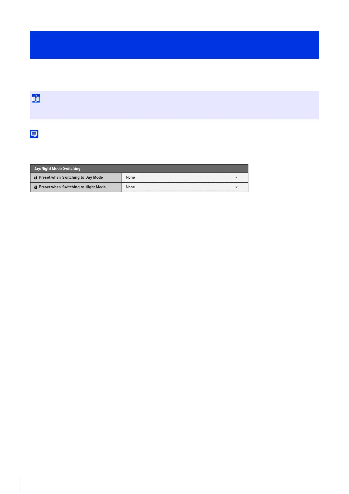 When the Admin Viewer or other camera control applications have control privileges, the presets for [Preset when Switching to Day