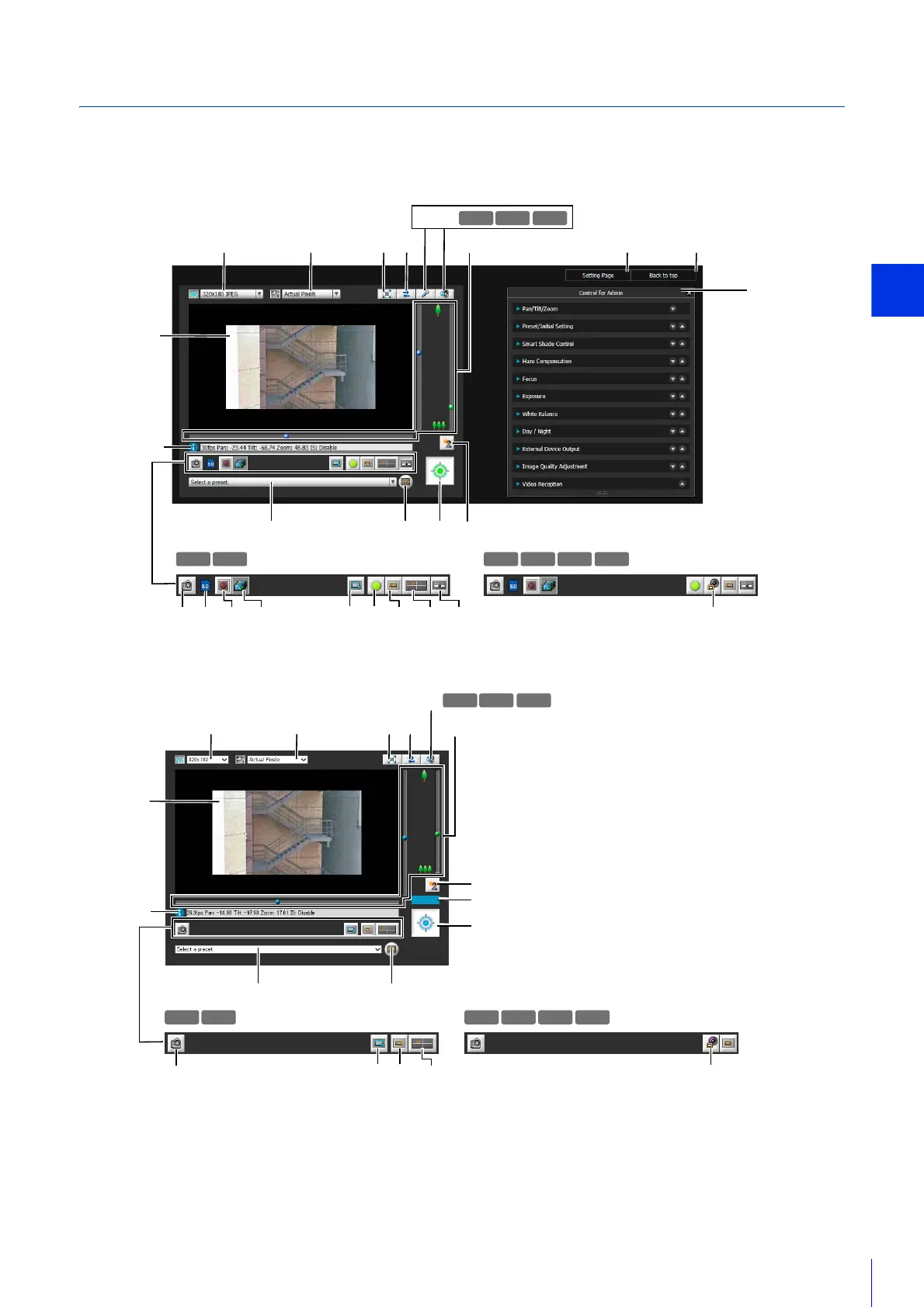Set the size and format of video received from the camera (Admin viewer only) (P. 143).