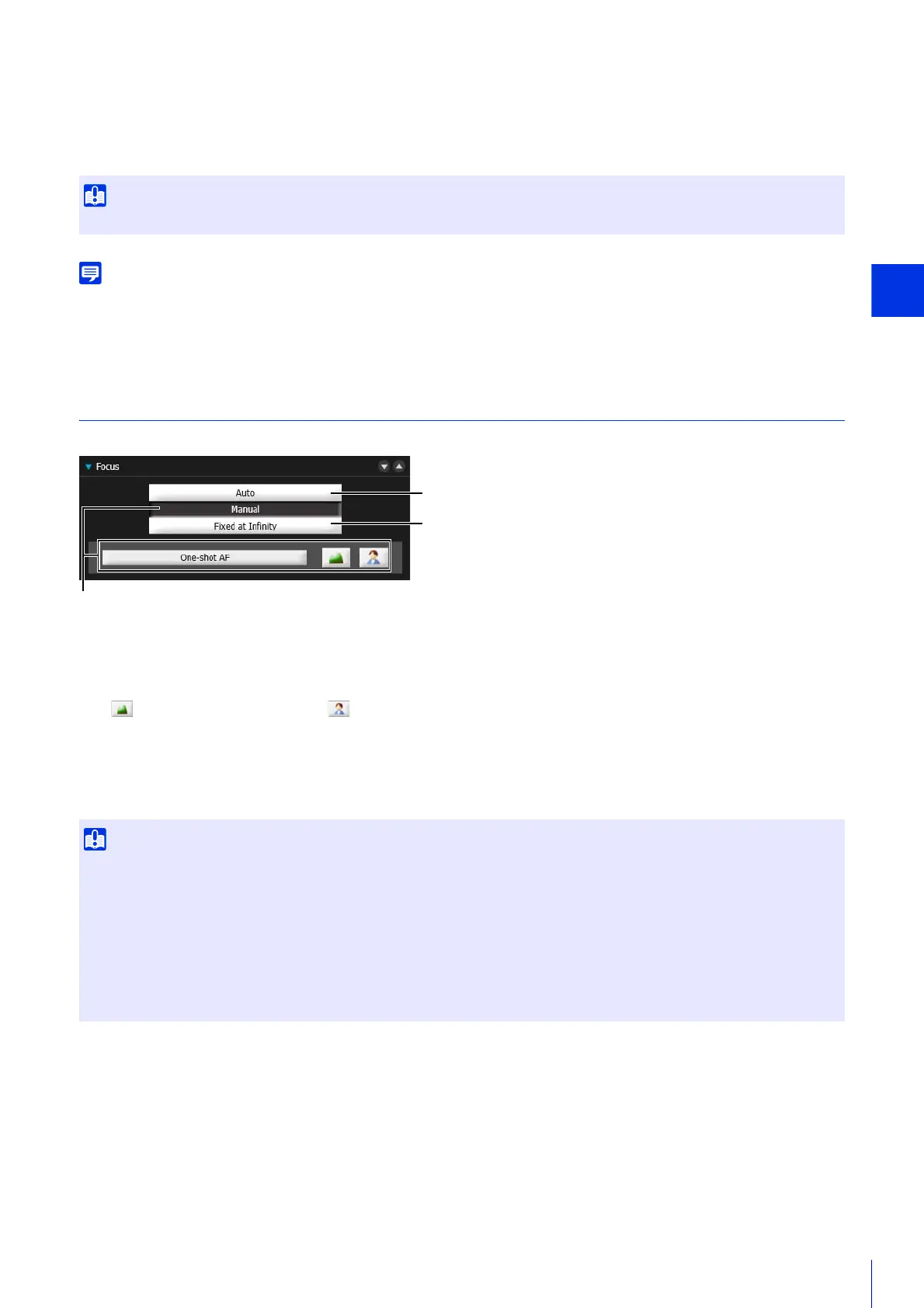 shot AF] in [Focus]. If this occurs, use [Manual] to set the focus.