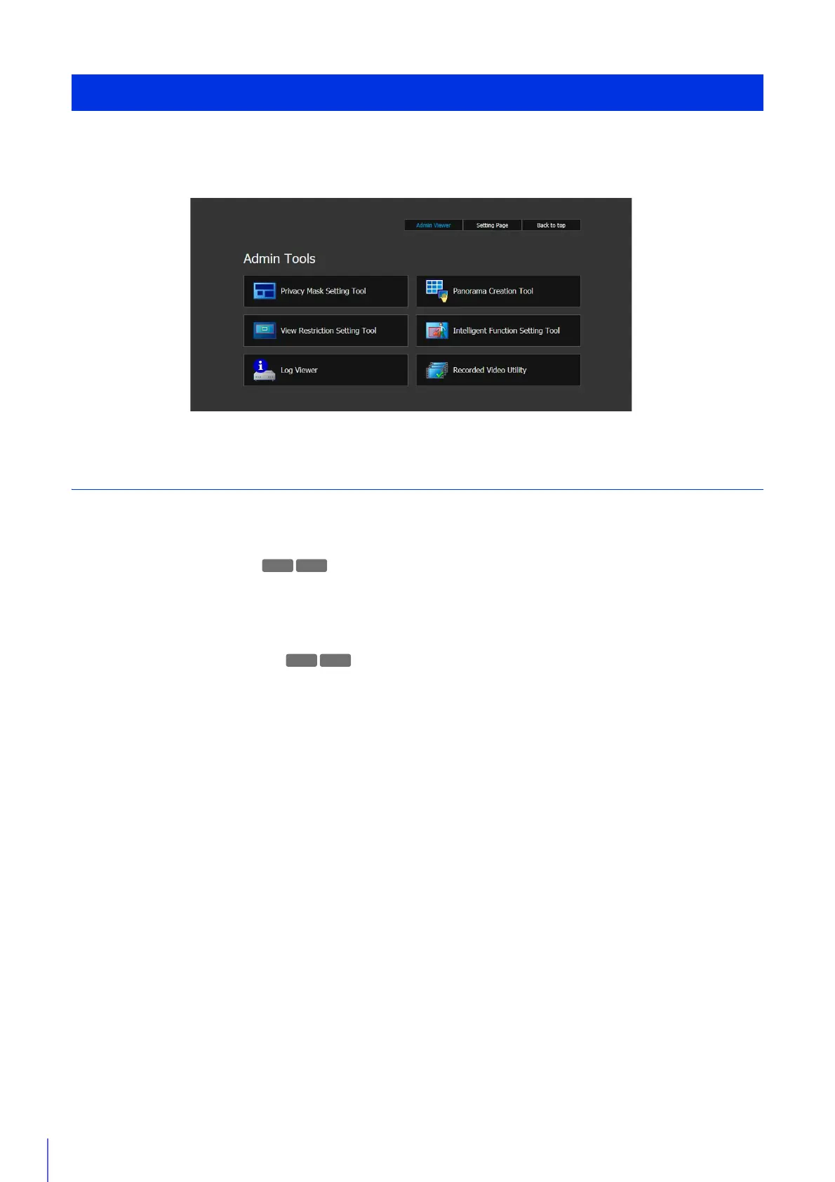 The Admin Tools consists of tools for configuring settings, such as for camera use, a viewer for checking the camera