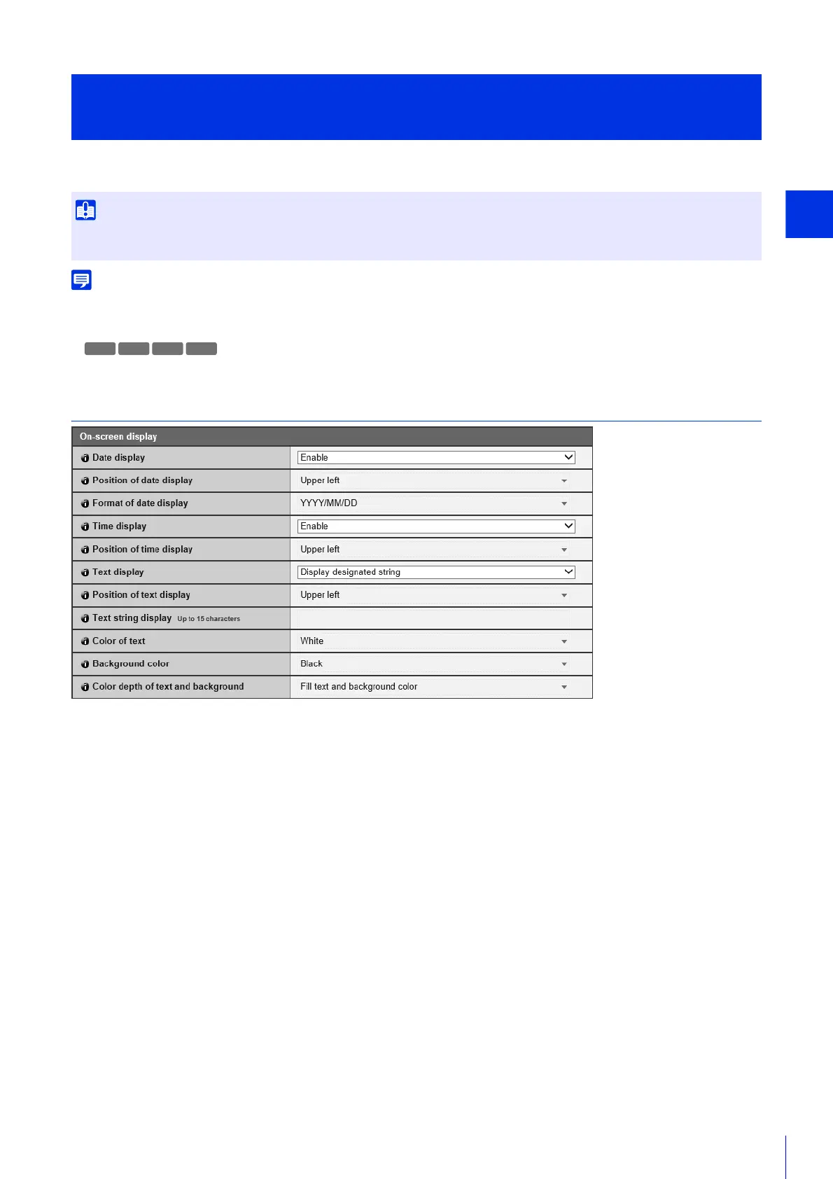• When using digital PTZ, on-screen display will not appear if the cropped video has a horizontal size of 384 pixels or less.