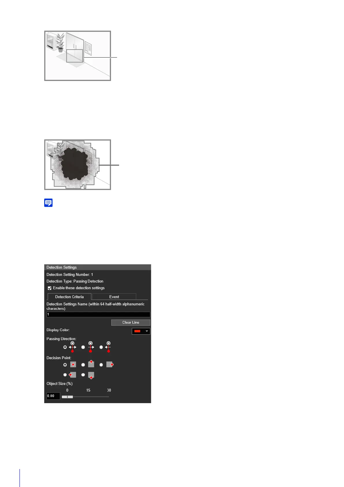 The detection line for passing moving objects is determined by setting the passing direction and object decision