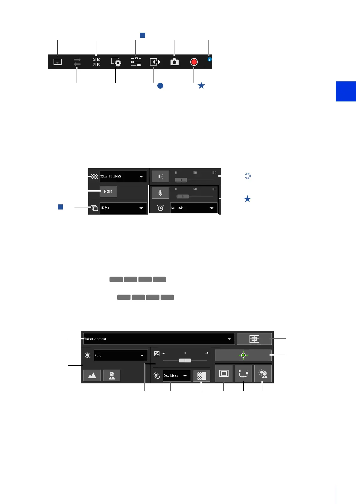 Plays/stops the transmitted audio and sets the volume and audio transmission time (P. 82).