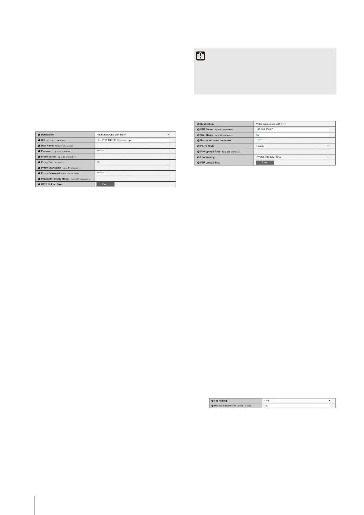 • For information about the HTTP upload function and settings,
