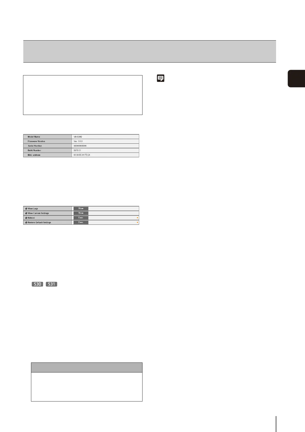 Viewing Current Settings, Event Logs and Performing Maintenance