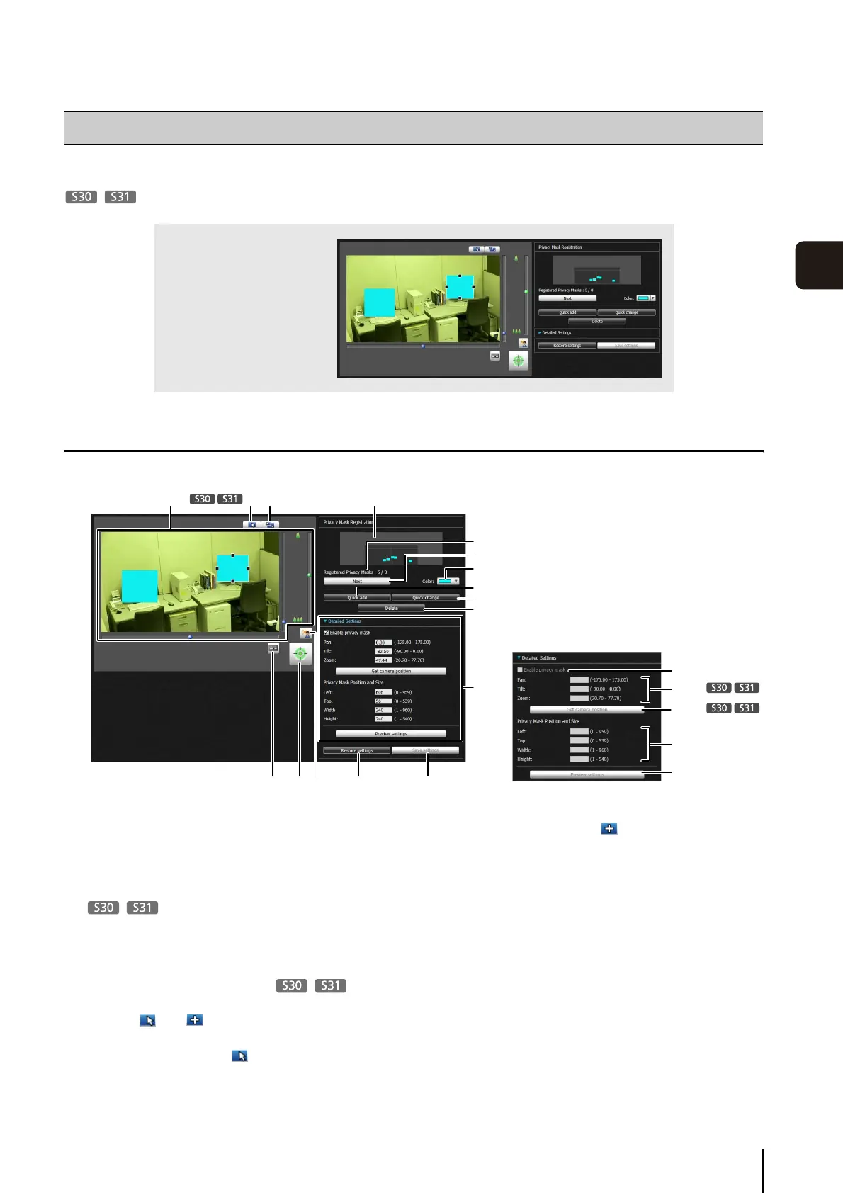 When the button is set to , privacy masks can be