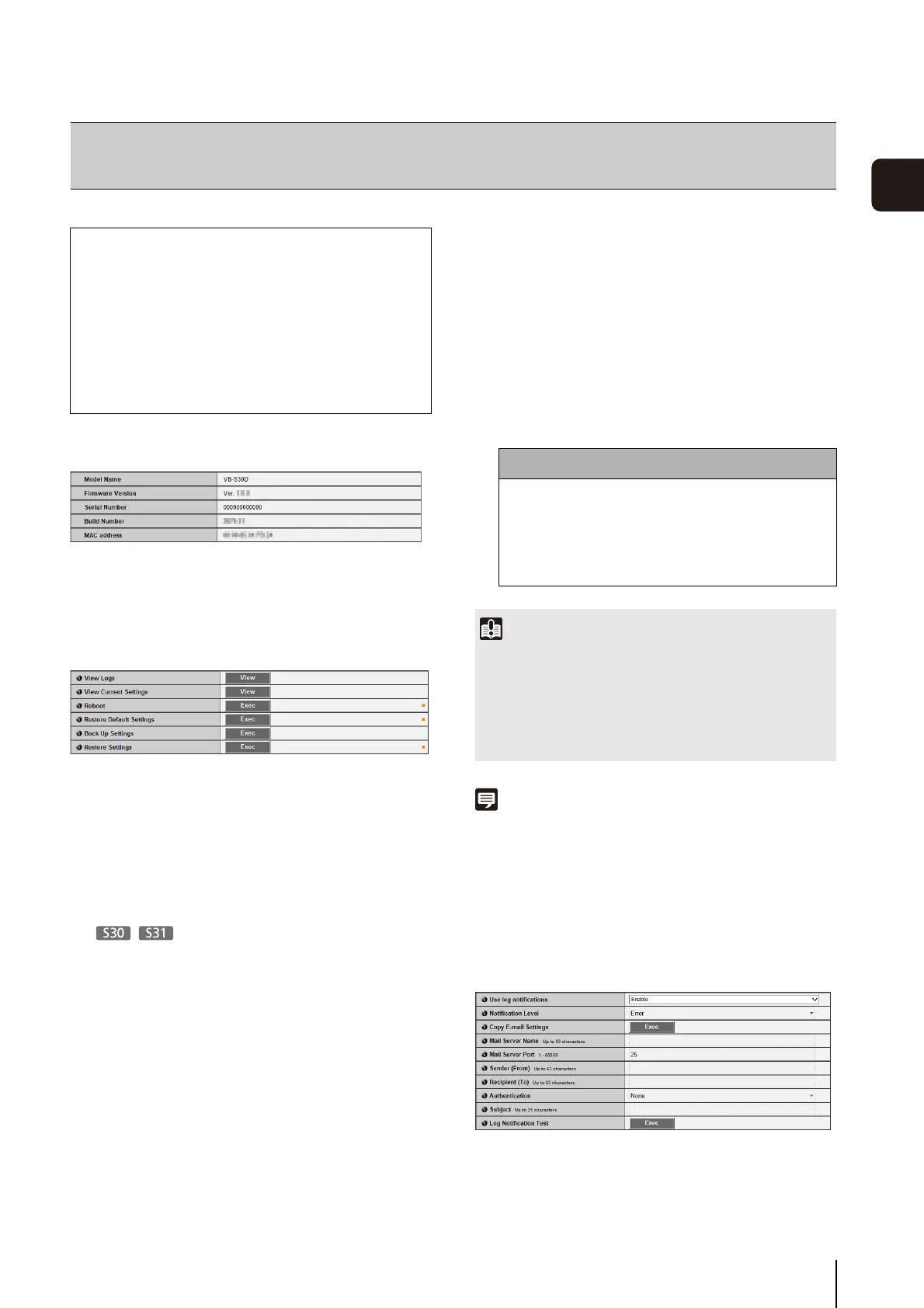 Viewing Current Settings, Event Logs and Performing Maintenance