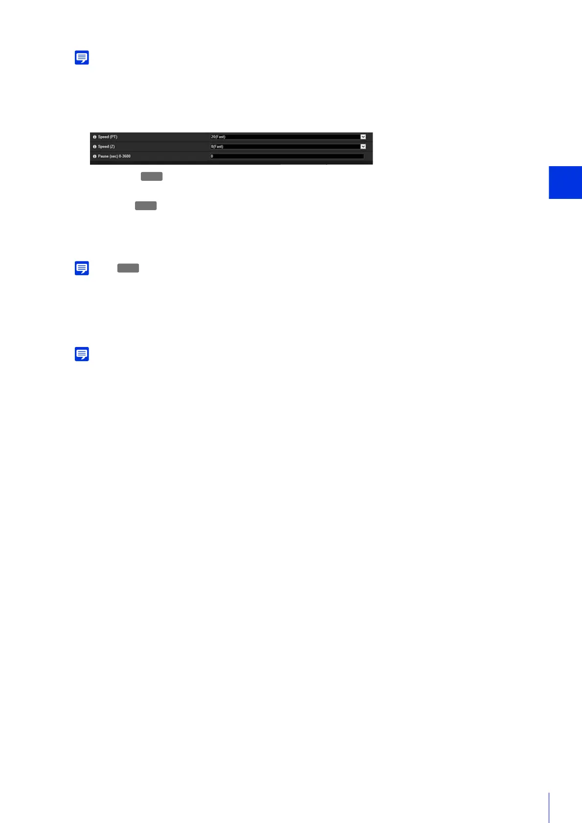 Configure the preset speed and pause duration.