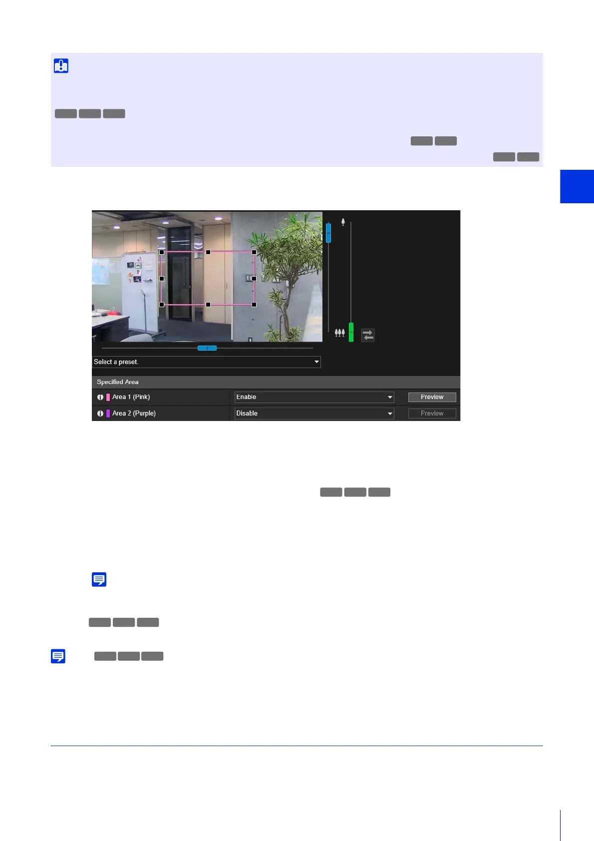 The camera will move to a specified area if you click [Preview] for that area.
