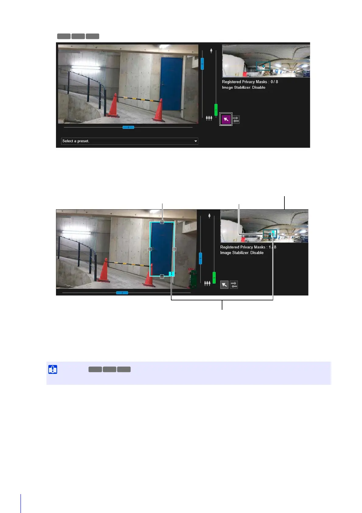 Set [Mask area] to [Disable] to temporarily disable a privacy mask area without deleting it. The disabled privacy