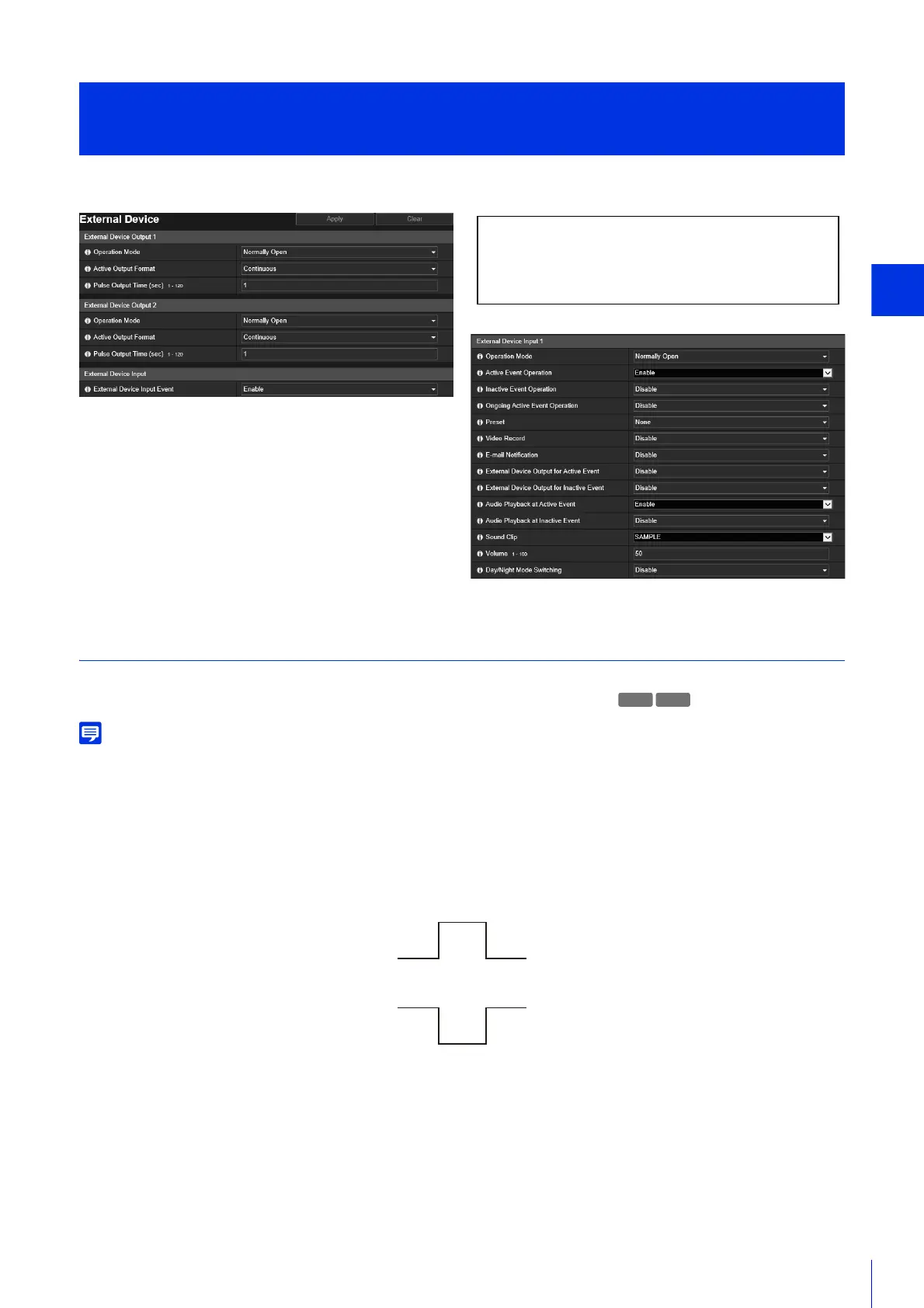 If you set [Normally Open], an active event occurs when the output terminal connection closes, and an inactive event