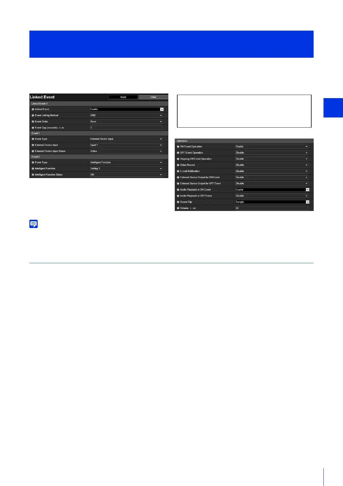 You can set the operations to perform, such as recording video or sending e-mail notifications, when a linked event is