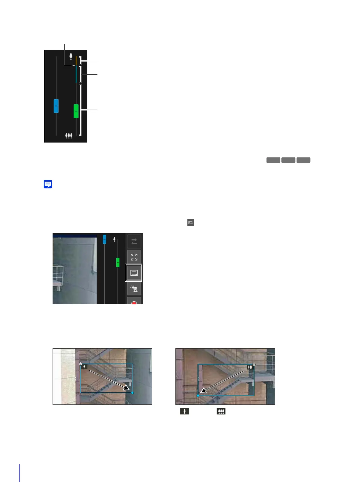 When operating in Area Zoom mode, an icon (zoom in: ; zoom out: ) is displayed in the frame.