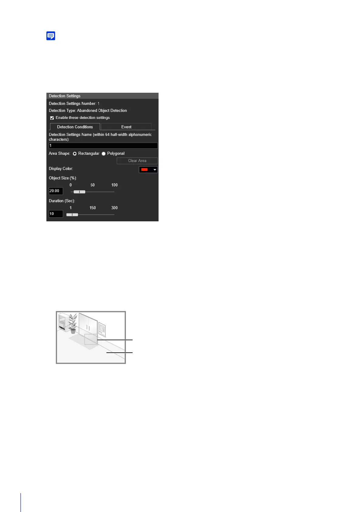 Configure [Duration (Sec)] for the time required for an object to be detected as an abandoned object.