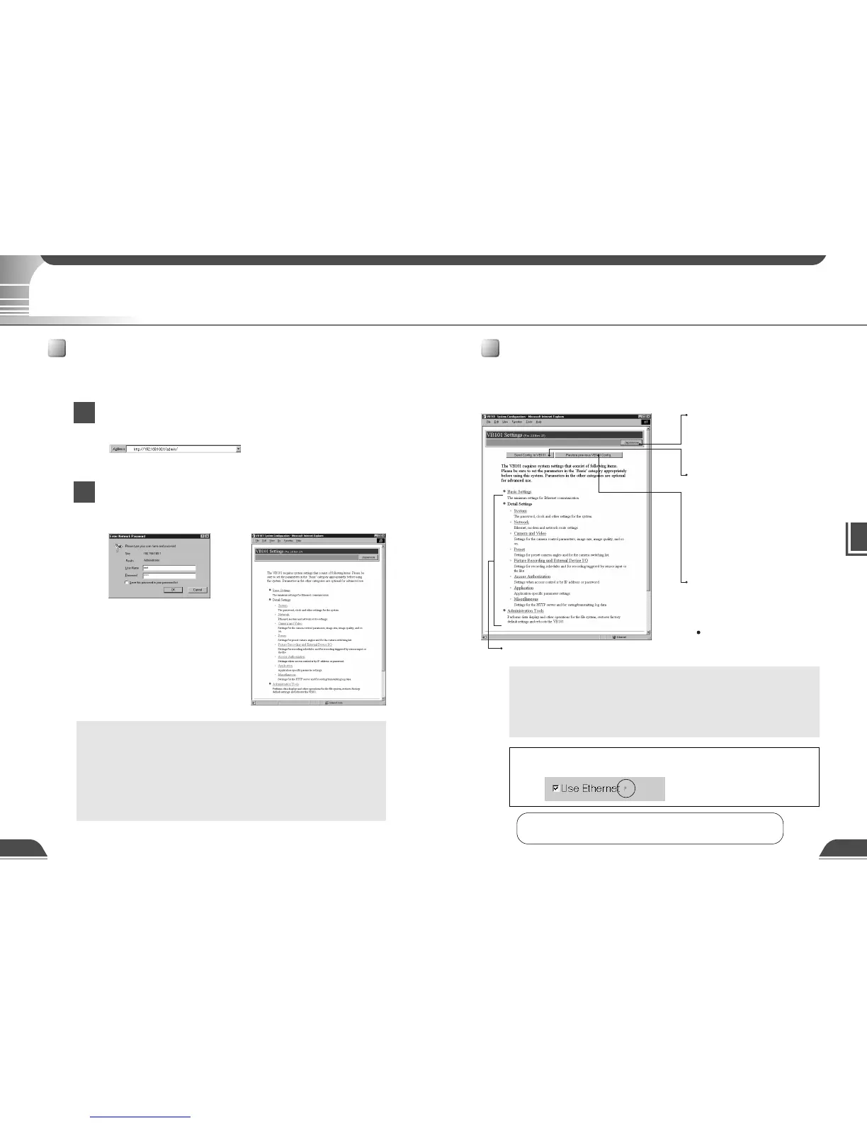 The various settings on the VB101 are specified by using a browser to access Web pages on the