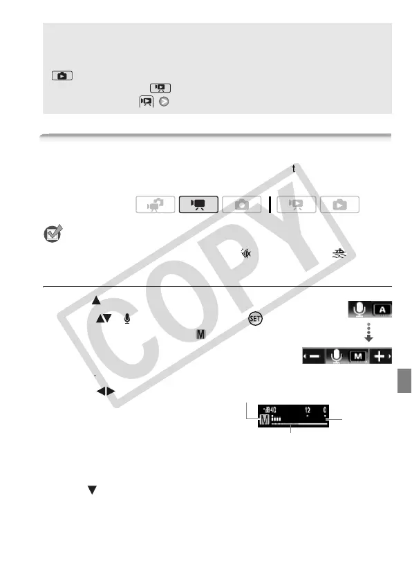 microphone. You can display the audio level indicator while recording.
