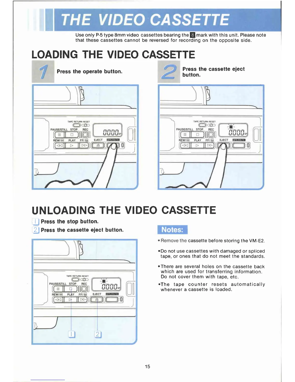 Canon VM E 2 - The Video Cassette; Loading the Video Cassette; Unloading the Video Cassette