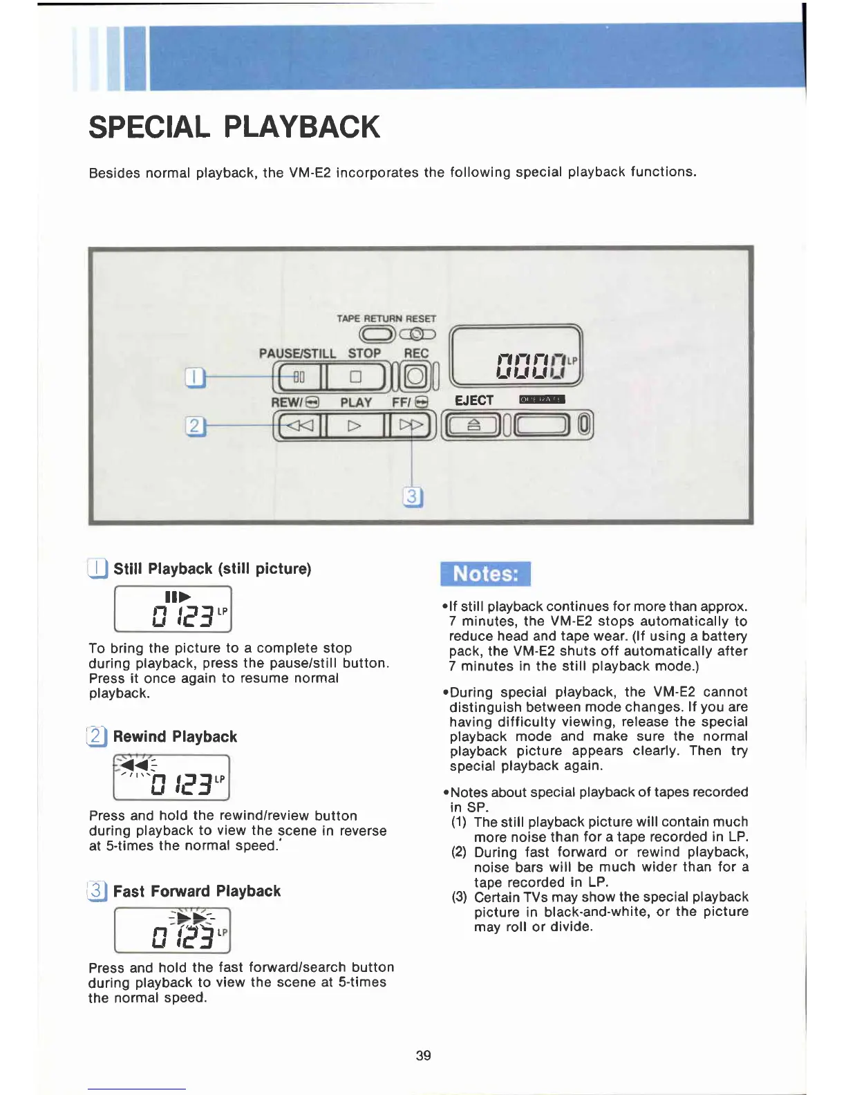 Canon VM E 2 - Special Playback; Still Playback; Rewind Playback; Fast Forward Playback