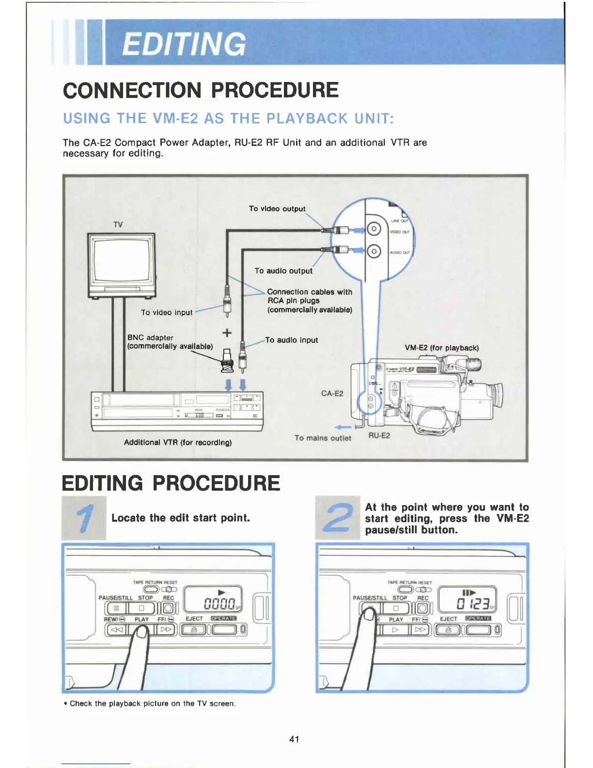 Canon VM E 2 - Editing; Using the VM-E2 as the Playback Unit; Editing Procedure