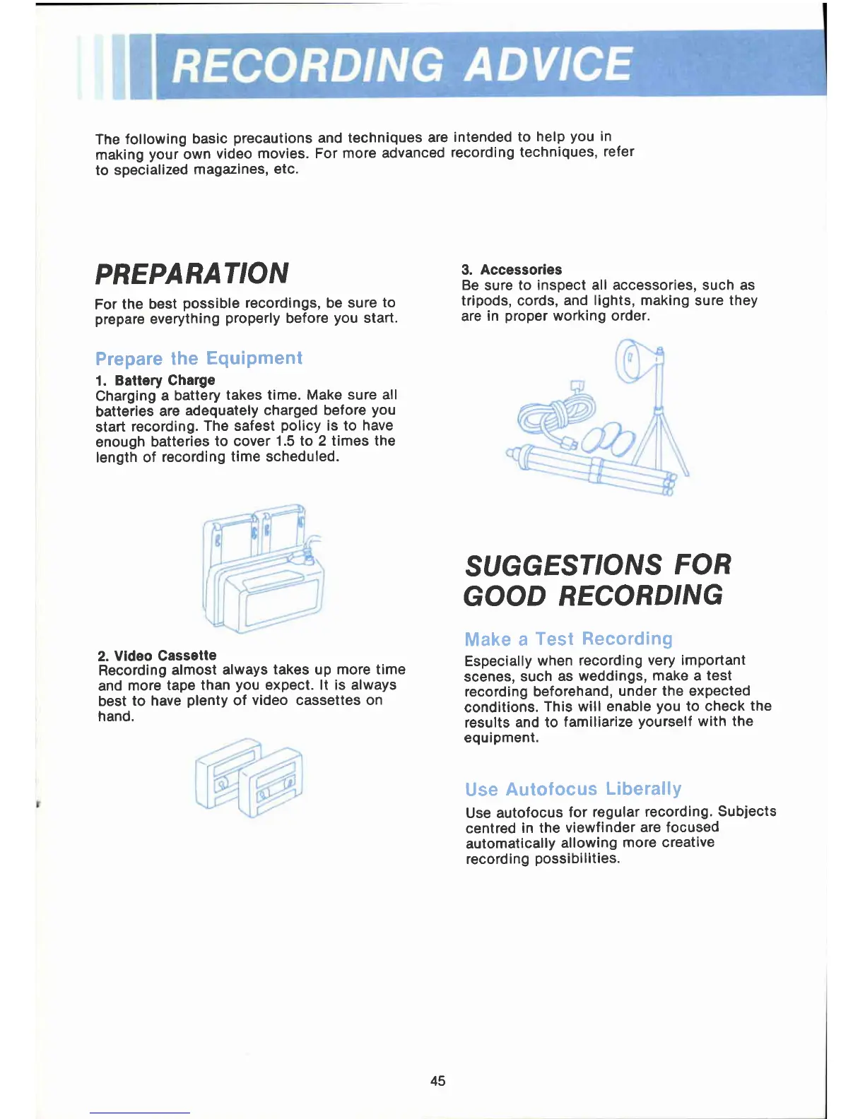 Canon VM E 2 - Recording Advice; Prepare the Equipment; Make a Test Recording; Use Autofocus Liberally