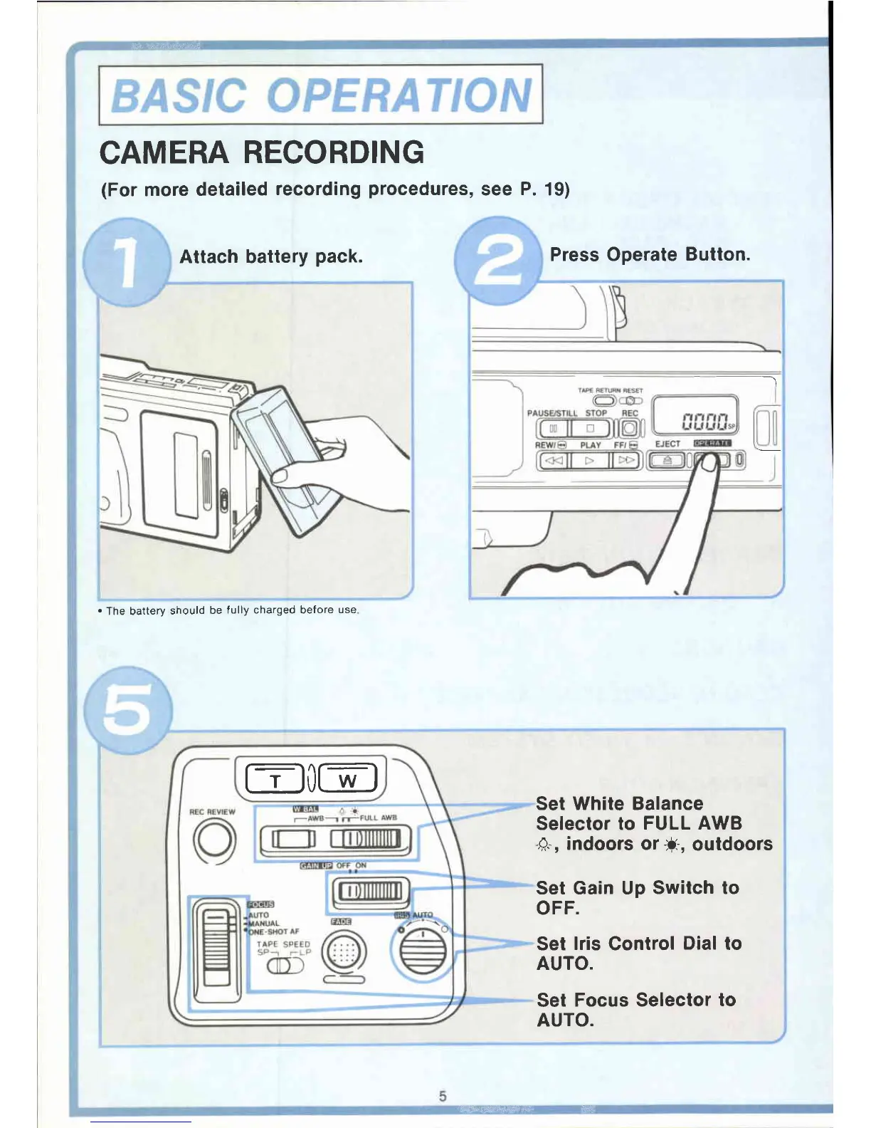 Canon VM E 2 - Basic Operation; Camera Recording; Attach Battery Pack