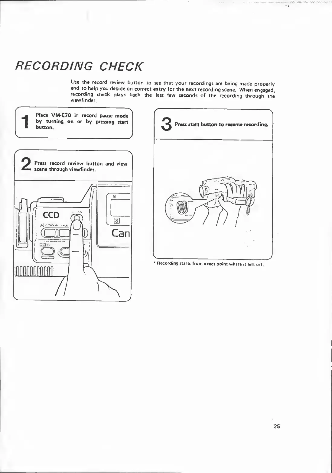 Canon VM-E70 - RECORDING CHECK; Performing Recording Check; Resuming Recording