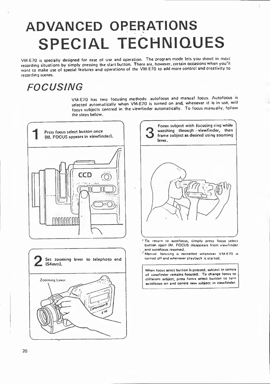 Canon VM-E70 - ADVANCED OPERATIONS; Special Techniques: Focusing; Manual Focusing Procedure