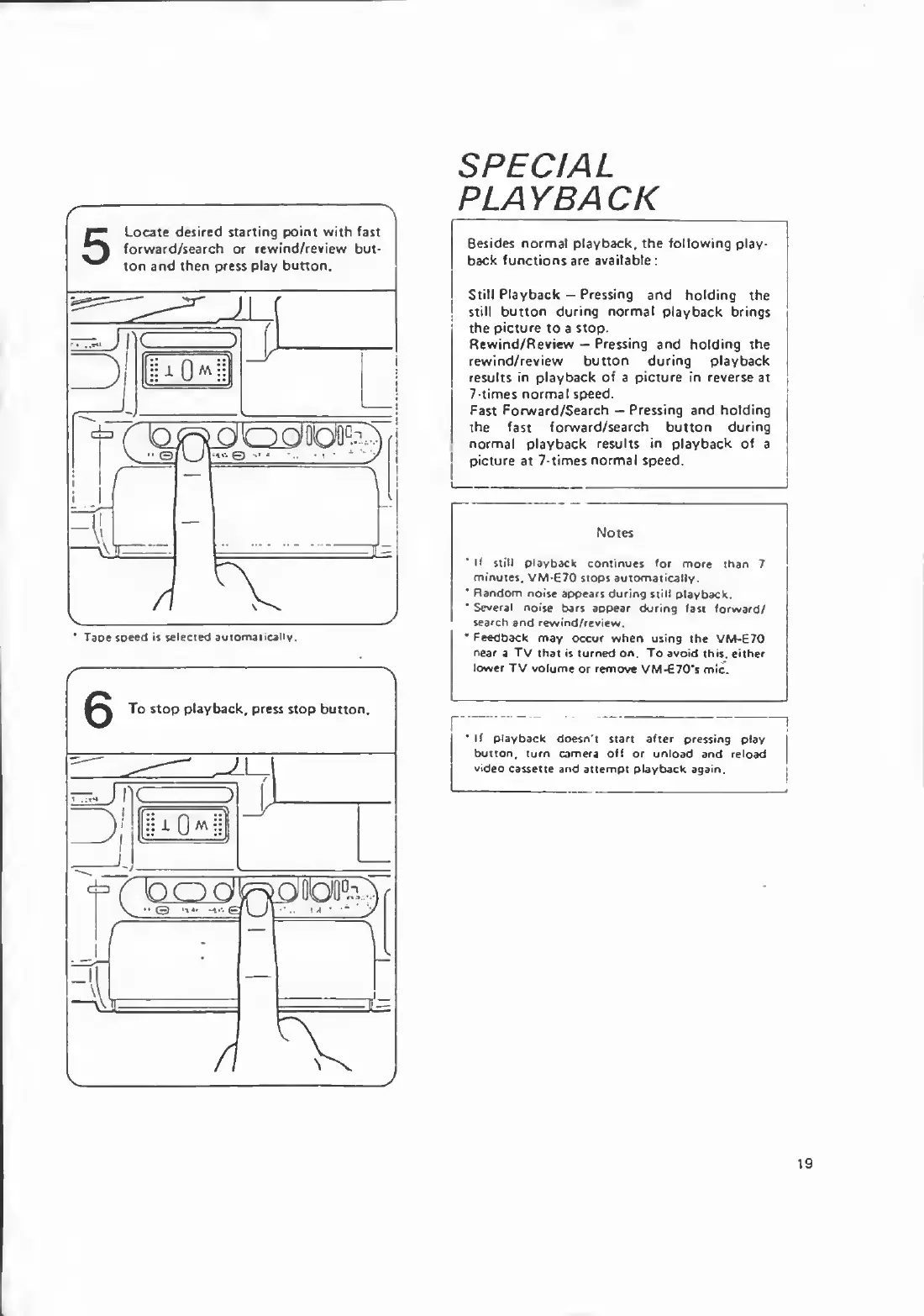 Canon VM-E70 - SPECIAL PLAYBACK; Still Playback; Rewind;Review Playback; Fast Forward;Search Playback